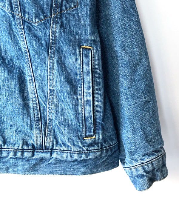 DESCENDANTから、TRUCKER DENIM JACKETが入荷しました。13ozのコットン製デニム素材を使用したトラッカージャケット。裏地にストライプ柄のラグを配した保温性の高いヘビーアウター仕様。環境に配慮したウォッシュ加工による味わい深い色落ちが美しい1着。フラップ付きのベース型ポケットに、両サイドにハンドウォーマーポケットを携えた作り。