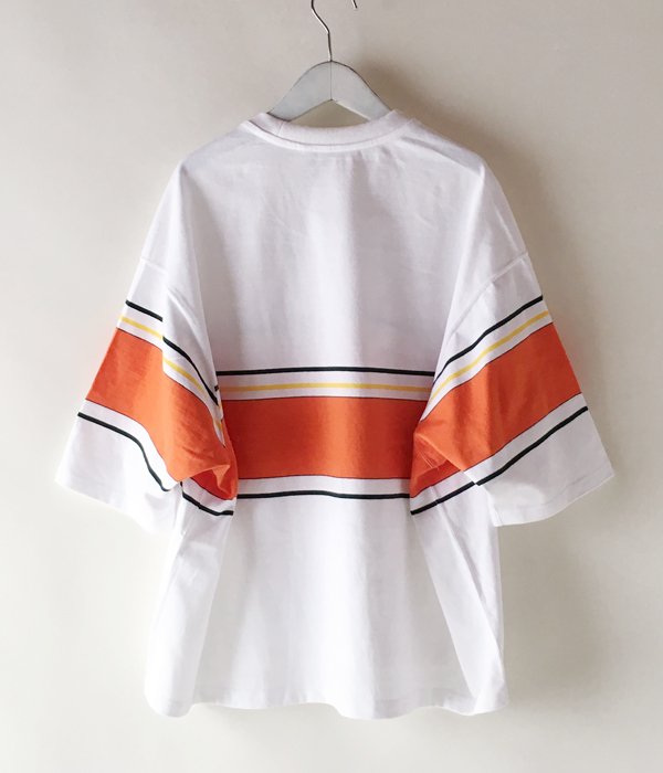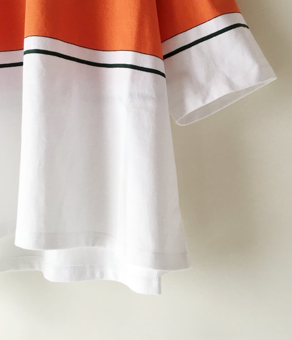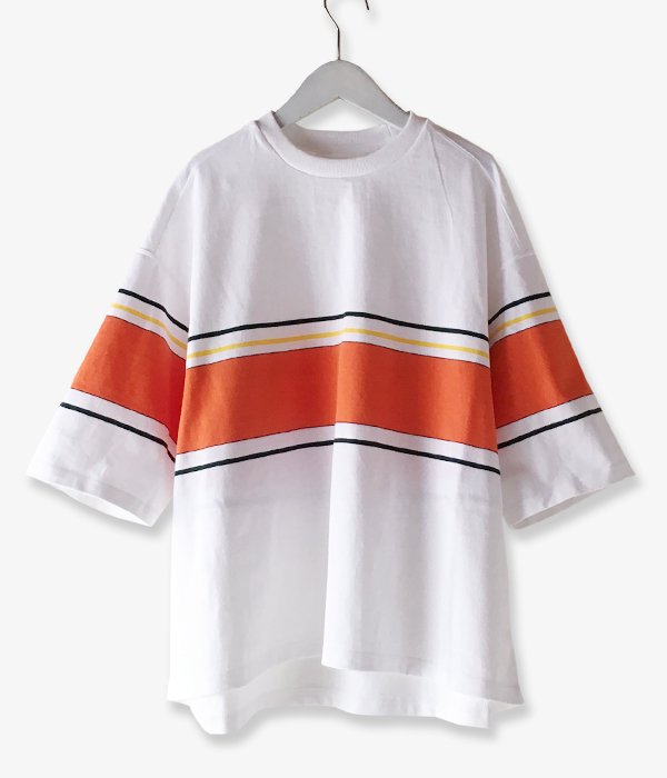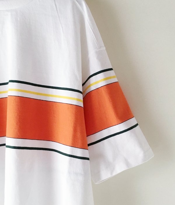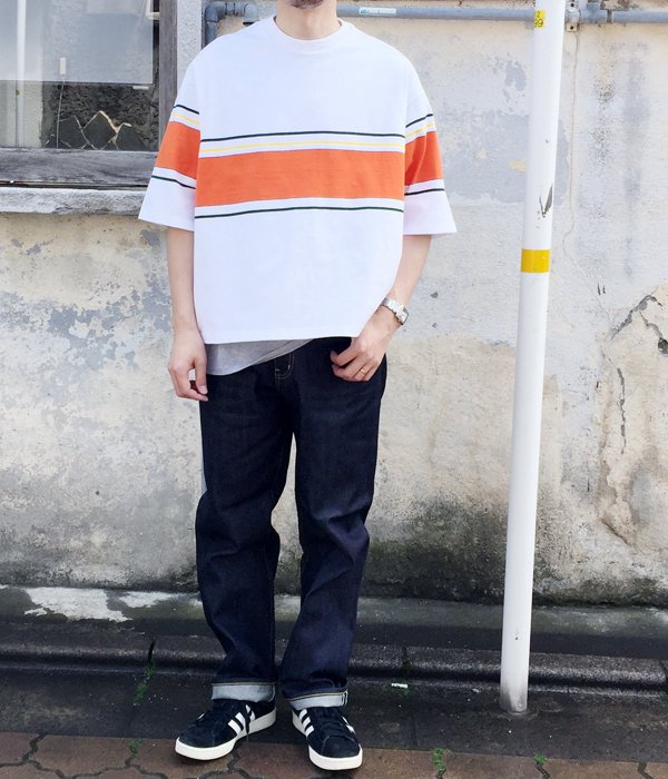 先にリリースされたラガーシャツと同じボーダー柄の半袖C/Nバージョン。スクエアなシルエットはここでも健在。夏場の主役級の存在感を放ちます。