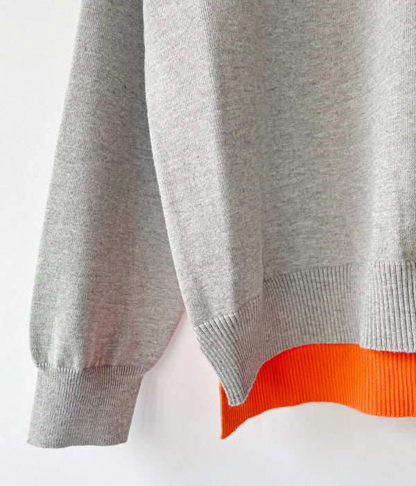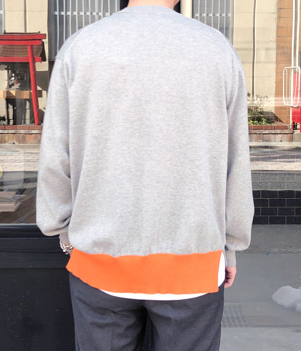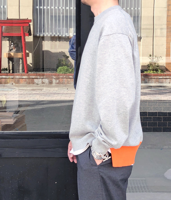 DIGAWELから、COLOUR SCHEME RIB SWEATERが入荷しました。ローゲージで編み上げたコットン製クルーネックセーター。前後異なる着丈の裾にスリットを入れ、後ろリブカラーをビビッドなオレンジに切り替えたデザイン。丈を少し短く身幅をゆったりとしたすっきりとしたサイズバランスに仕立てました。