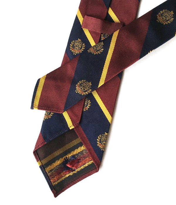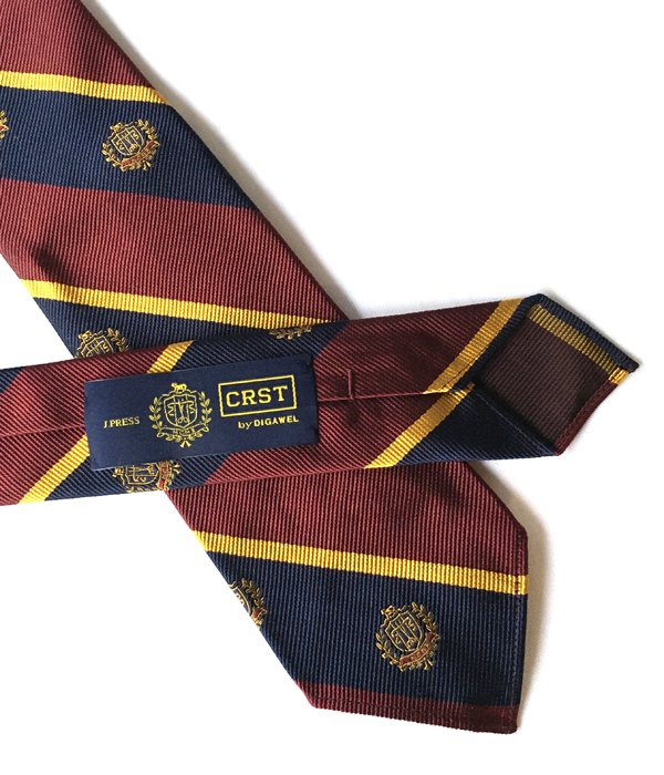 DIGAWELから、CRST TIEが入荷しました。今シーズンから始まった、J.Press ORIGINALSとの共同レーベルCRSTからの一着。3色によるカラーリングを巧みに使った幅の異なるストライプ柄デザインによるシルク製ネクタイ。CRSTロゴがデザインを引き立て、剣先はミシンタタキ仕様です。