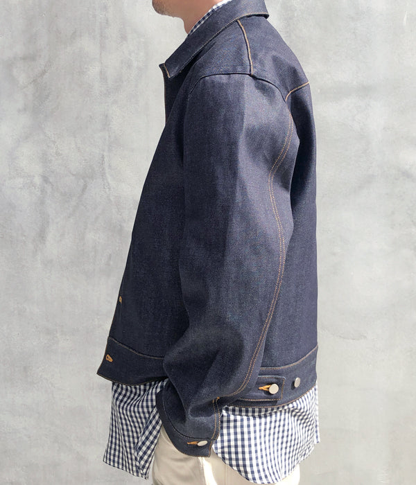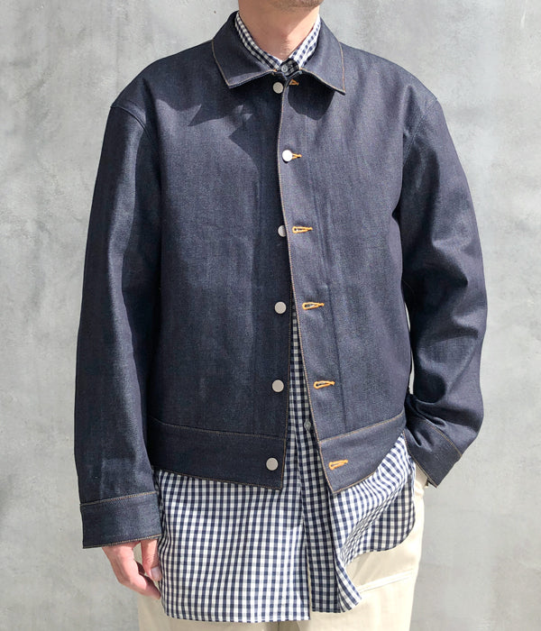 DIGAWELから、DENIM JACKETが入荷しました。所謂Gジャン的なステッチとパッチポケットを排除することでエレガントな表情を得たミニマムな仕上がり。実用的な両脇のサイドポケットと、内ポケットを設けました。身幅と着丈のバランスも絶妙で着こなしやすいデザイン。