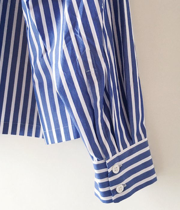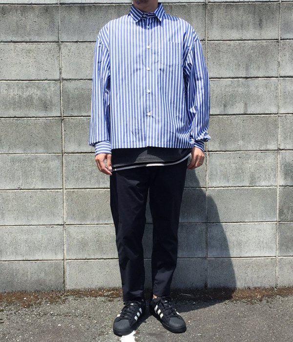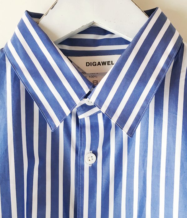 DIGAWELから、FRINGE SHIRTが入荷しました。フロントデザインは清涼感のあるストライプシャツ。バックヨークに大胆にあしらったフリンジが目を惹きます。ゆったり身幅とやや短めの着丈によるバランスはDIGAWELのニュースタンダード。