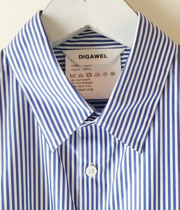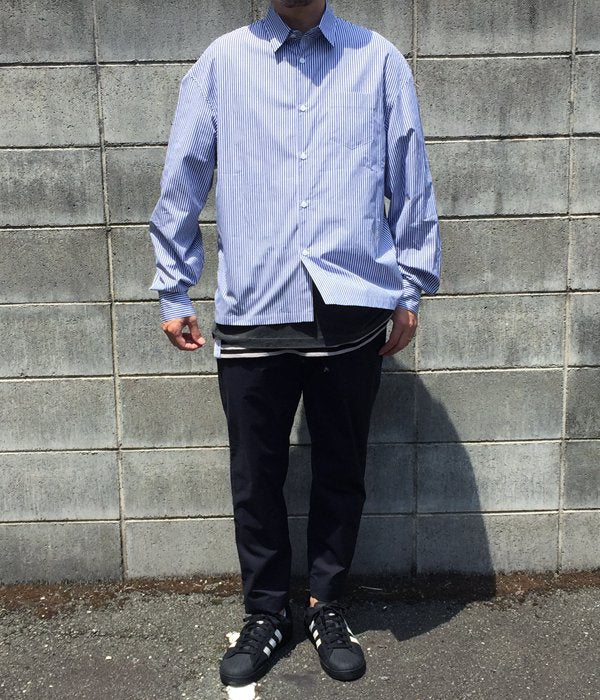 DIGAWELから、FRINGE SHIRTが入荷しました。フロントデザインは清涼感のあるストライプシャツ。バックヨークに大胆にあしらったフリンジが目を惹きます。ゆったり身幅とやや短めの着丈によるバランスはDIGAWELのニュースタンダード。