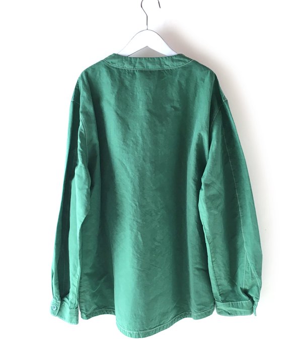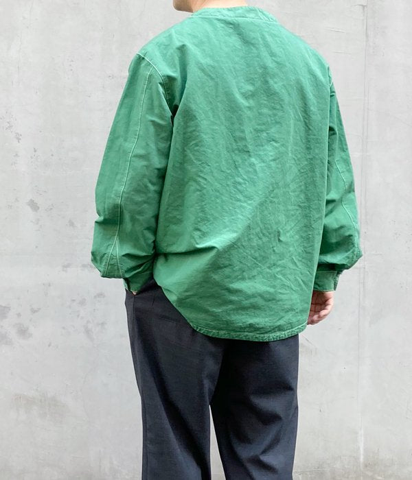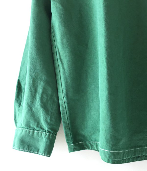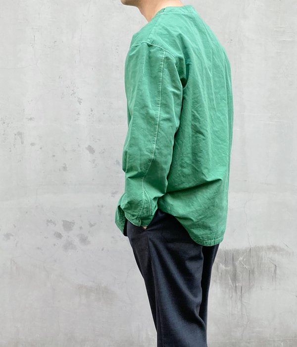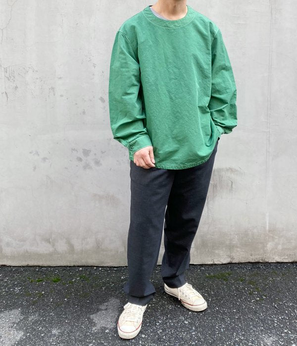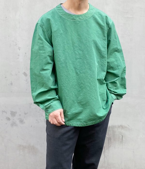 DIGAWELから、GARMENT DYE P/Oが入荷しました。ナイロンと麻の一種"ラミー"による混紡素材を使用し、通気性の良いシャリっとした質感のプルオーバー。ネック周りにはスリットをあしらい、袖口はカフスボタン留めのデザイン。染色を免れた白いステッチがアクセント。