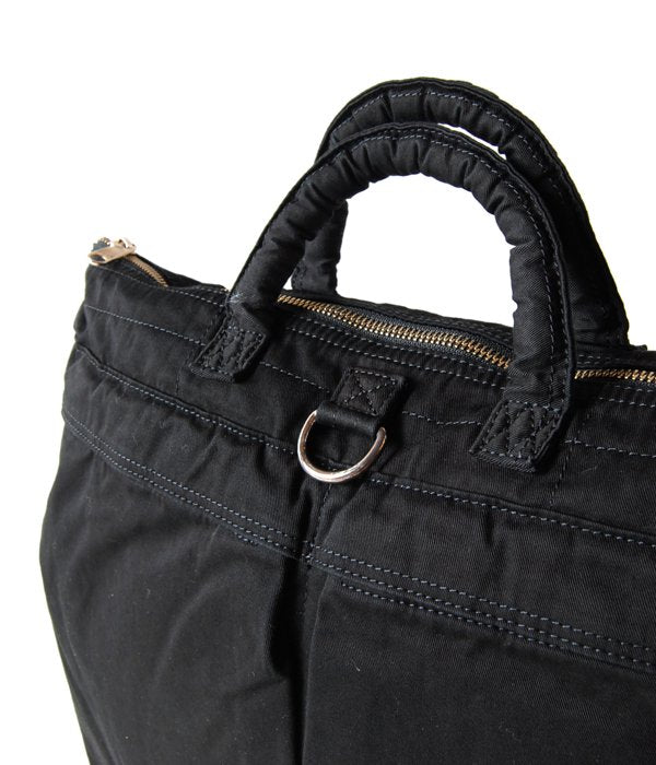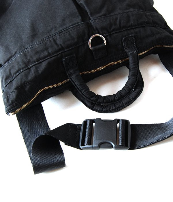 コットン製のマットな重厚感が雰囲気抜群なヘルメットバッグ。前面2か所のBIGポケットとインサイドポケットで大容量と使い勝手の良さはYOSHIDA MADEの折り紙付。