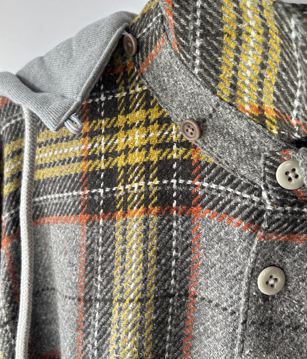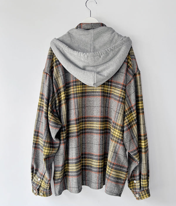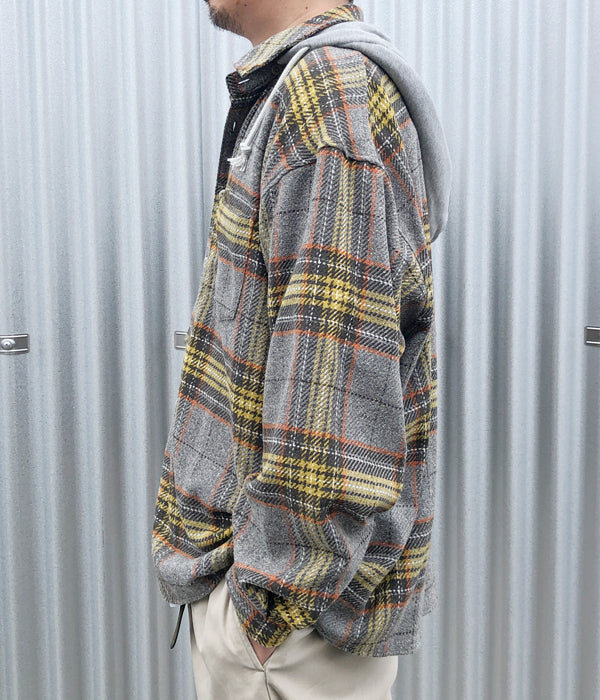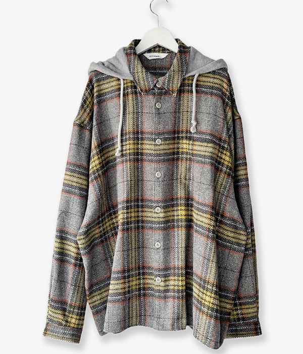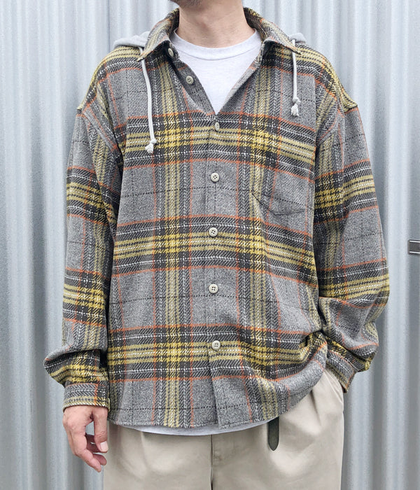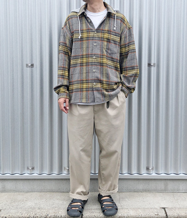 DIGAWELから、HOODIE SHIRTが入荷しました。柔らかな風合いの気持ちの良いフランネルコットンを使用しオーバーサイズに仕立てたフード付きチェックシャツ。フードドッキングシャツには珍しい襟付きのデザイン&フードは取り外し可能なので2WAYなコーディネートを楽しめます。チェックのカラーリングも絶妙で、小振りなカフスがDIGAWELらしい1着です。