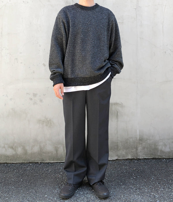 DIGAWELから、IN TUCK PANTS②T/Wが入荷しました。ウールミックス素材によるインタックパンツ。センタープレス入りのきれいなシルエットに、ウェストのサイド部分にゴムを仕込んだイージーな着用感が特徴。やや高めのウェスト位置による雰囲気抜群の1着です。
