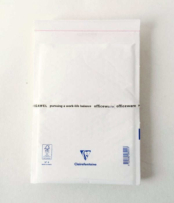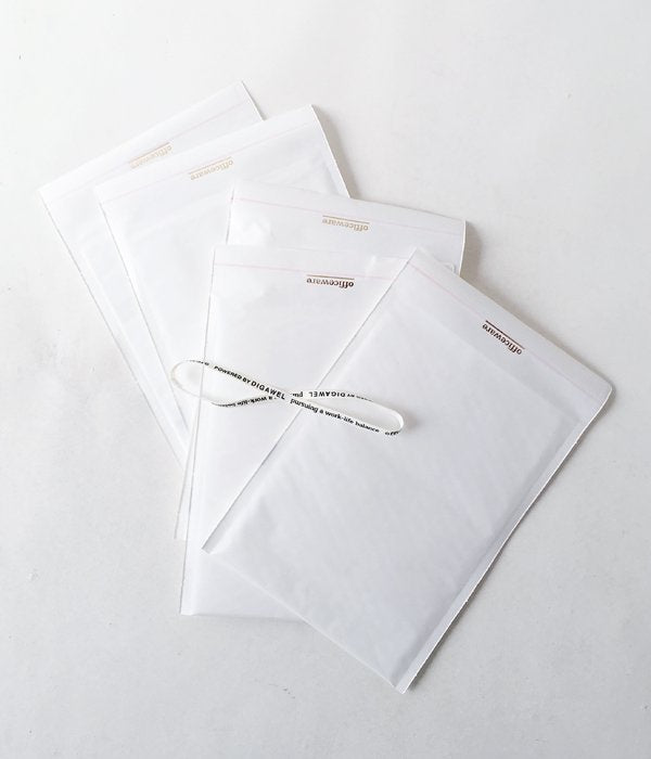 DIGAWELから、JIFFY BAG(5 PIECES)が入荷しました。仏Clairefontaine社製のプチプチ入り封筒に、officewareシリーズの金ロゴを落とし込んだ5冊セット。ラバーバンドLONGが1本付属します。