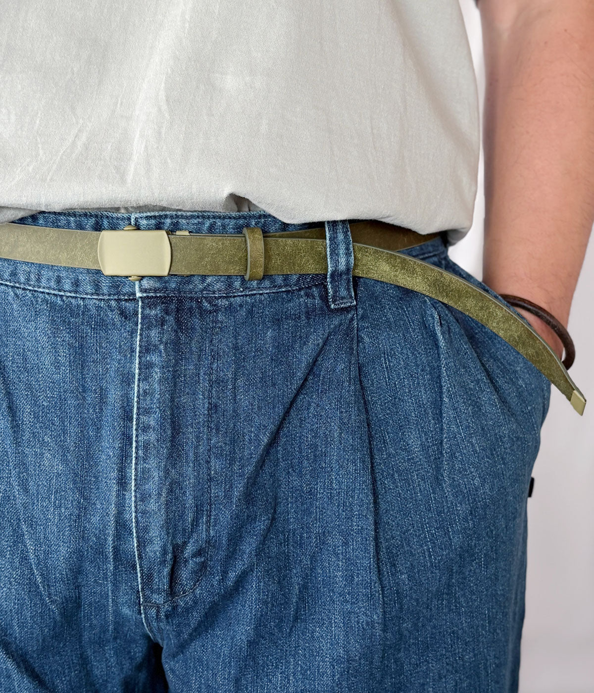 DIGAWELから、LEATHER SLIDE BELTが入荷しました。定番のベルトを改良した新型が登場。細身の幅はそのままに、GIベルト、ガチャベルトに使用されるローラーバックルを採用しました。バックルはレザーと同色に彩られ、ユーザー任意の位置で留められるので使い勝手が良いです。定番モデル同様柔らかく馴染みの良いレザー製。専用箱が付属します。