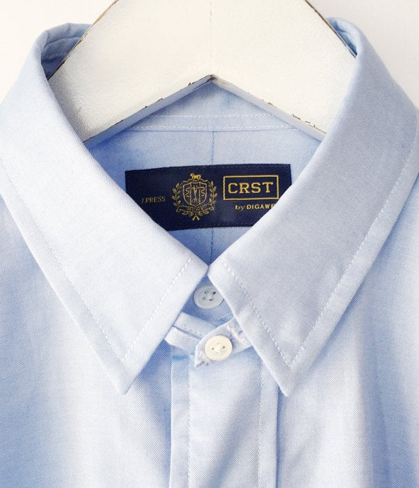 DIGAWELから、JFKが入荷しました。今シーズンから始まった、J.Press ORIGINALSとの共同レーベルCRSTからの一着。滑らかな肌触りのピンオックス素材を使用したタブカラー仕立てのシャツ。モデル名の通りの規格外なビッグサイズがこのシャツの特徴。胸にはCRSTアイコンを刺繍であしらいました。