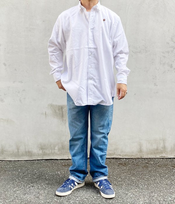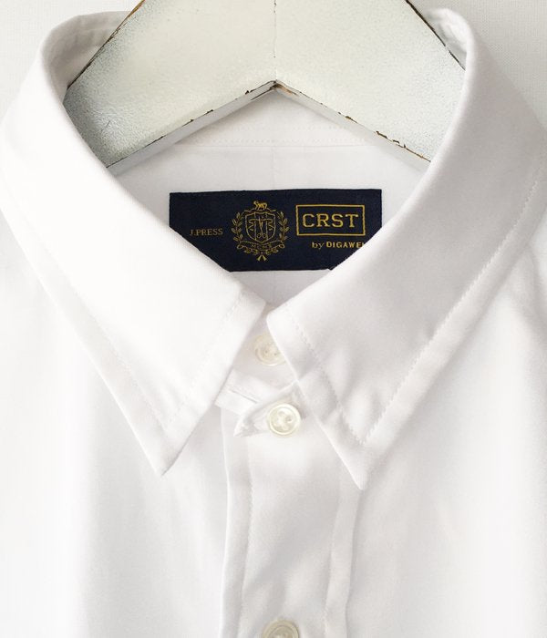 DIGAWELから、JFKが入荷しました。今シーズンから始まった、J.Press ORIGINALSとの共同レーベルCRSTからの一着。滑らかな肌触りのピンオックス素材を使用したタブカラー仕立てのシャツ。モデル名の通りの規格外なビッグサイズがこのシャツの特徴。胸にはCRSTアイコンを刺繍であしらいました。