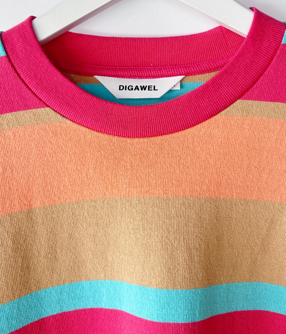 DIGAWEL/MULTI BORDER OVERSIZED T-SHIRT (BEIGE)