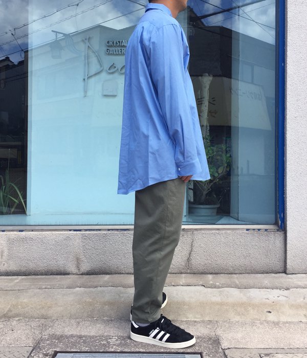 太い前立てが面白いラガーシャツのようなデザインのP/O SHIRT。前後異なる着丈に仕立てられ、秋のレイヤードを引き立ててくれそうな予感。