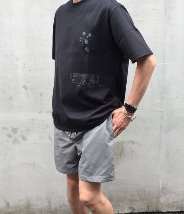 DIGAWELから、PRINT T-SHIRT2が入荷しました。厚手のコットンジャージーを使用したSS T-SHIRT。前面に同系色で潜む不気味なプリントデザイン。型の継ぎ目がやや前目に設計された変形的なパターンワーク。