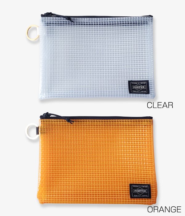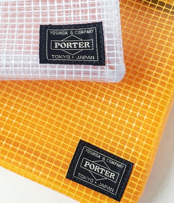 オフィスをテーマとしたアイテム群"officeware"シリーズより、丈夫なPVC素材を使用したポーチが入荷しました。Lサイズは大振りな多収納型。刻印入りのゴールドリングと、PORTERタグが効いています。