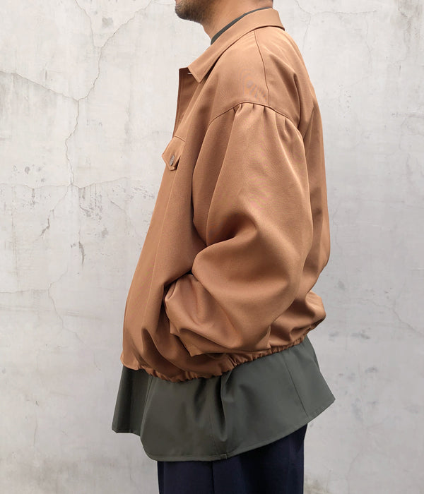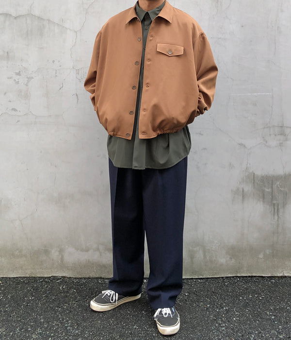 DIGAWELから、SHIRT COAT BLOUSONが入荷しました。さらっとした質感のポリ素材を使用したシャツジャケット。裾にゴムギャザーを仕込んだ適度な絞りがデザイン性を高め、胸のフラップポケットでワンポイント。サイドライン沿いにもポケットを備えアウターとしての役目も果たしてくれます。季節の変わり目にさらっと羽織るのにおすすめの1着。