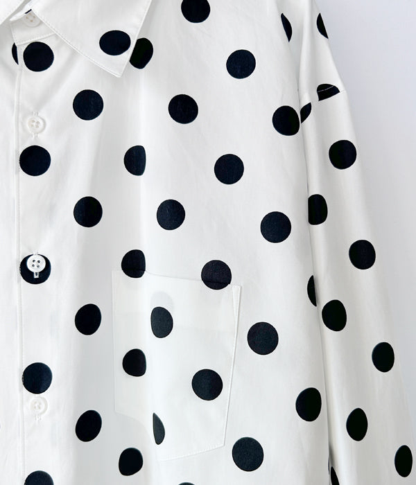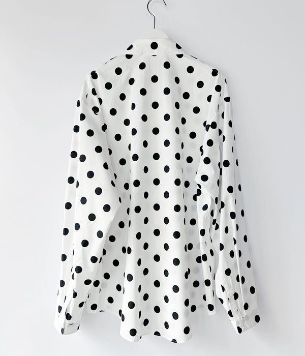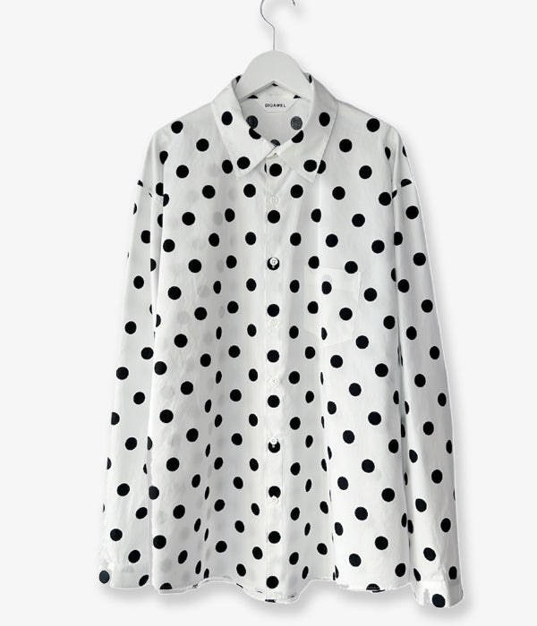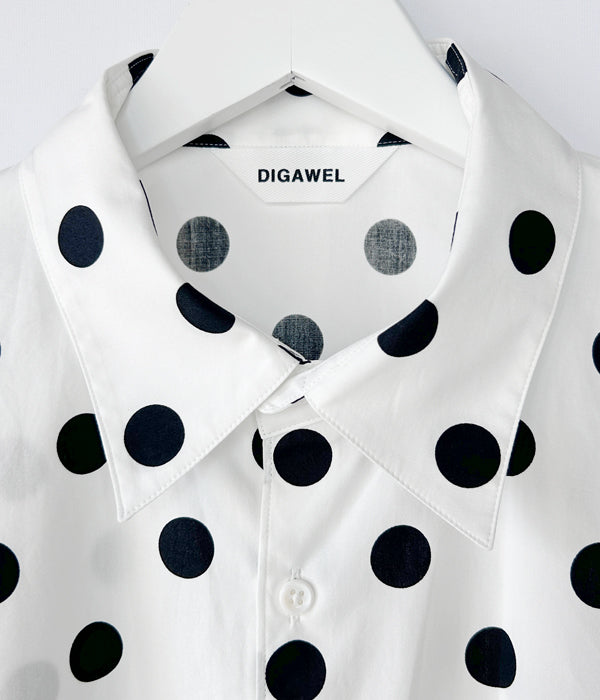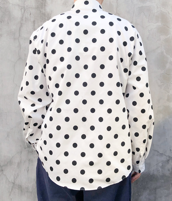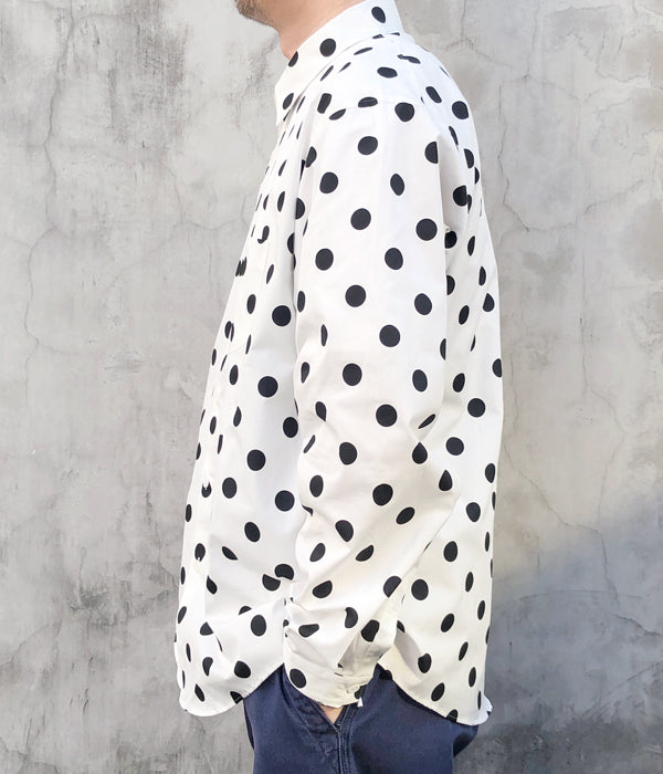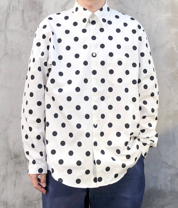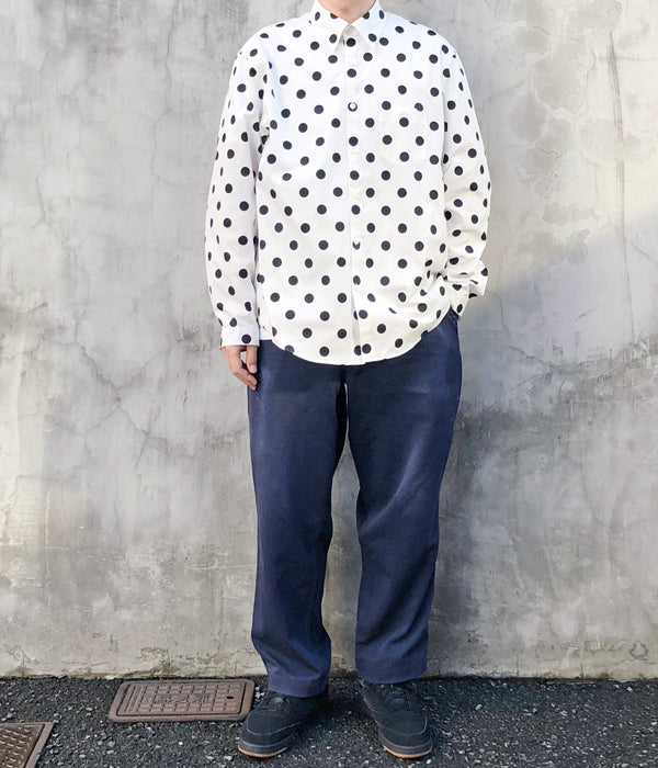 DIGAWELから、Shirt (generic) ① dotが入荷しました。ジェネリックシャツの特徴として、ゆったりとしたシルエットに、小振りなパッチポケット、バックヨーク設けないシンプルなパターン。今シーズンはDIGAWELアーカイブより、オリジナルのドット柄を復刻した待望のリリース。襟周りはネクタイの着用も可能なディティールでオンでもオフでも使えます。絶妙なポイントのドット柄とその配置間隔でセンスの良さがうかがえる1着です。