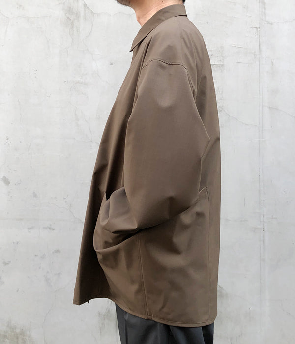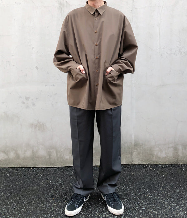DIGAWELから、SIDE POCKET OVERSIZED SHIRTが入荷しました。サイドに大きく設けたポケット(ステッチで2つに割っています!)が特徴的なデザインのレギュラーカラーシャツ。ゆったりとしたサイジングに仕立てシャツJKTの趣も兼ね揃えました。小振りなカフスもポイント。タイプライタークロスを用いたコシのある美しい光沢感がラグジュアリーな印象を与えます。22AW同型の生地違いによるマイナーチェンジモデル。
