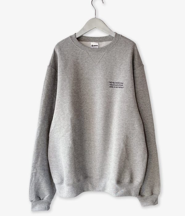 DIGAWELから、SWEATSHIRT(READY-MADE) EMBROIDERYが入荷しました。SOFFE製のガゼット付きボディを使用したクルーネックスウェット。刺繍で施したメッセージを胸元にあしらいました。ブランドネーム入りの品質タグを裏向きで背面に飾りました。US規格ボディによるラギッドな雰囲気が魅力の一着。