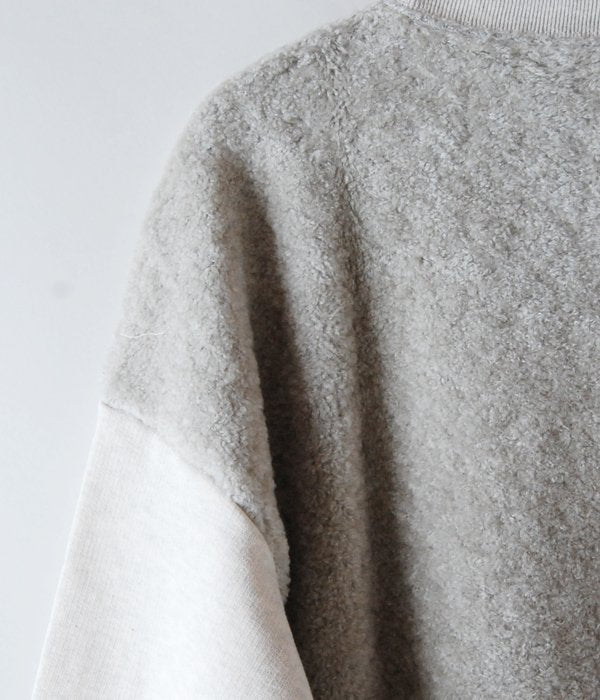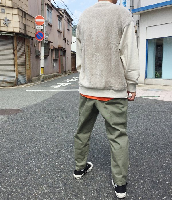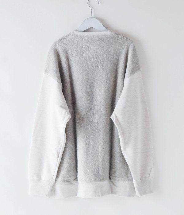 前後の素材を切り替えたスウィッチスウェット。前面のすっきりした印象とバックのパイルの対比が面白い一着。バックのみに裾リブを付けました。