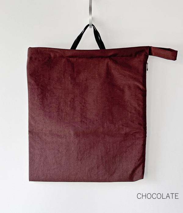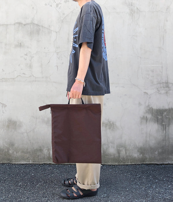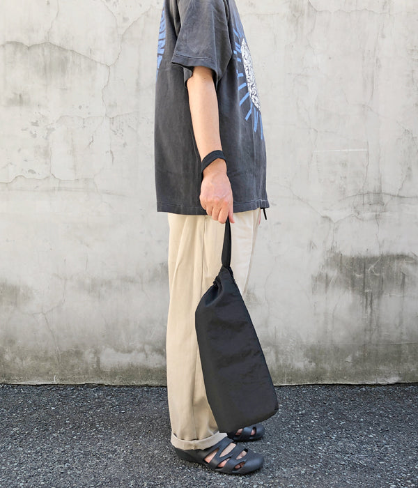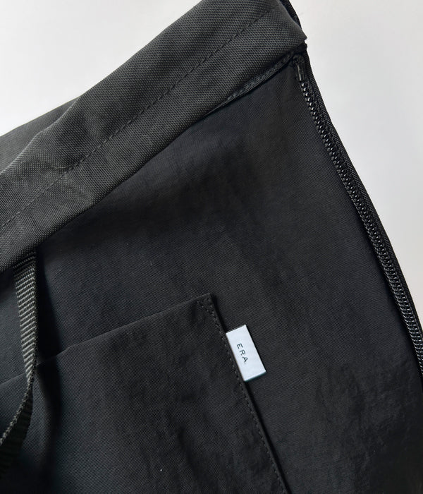 ERA.から、COOKING COAT BAGが入荷しました。コットンのような肌触りの撥水性タッサーナイロンを使用し、給食袋をイメージして作成された巾着バッグ。(内側に配した手持ちハンドルでも使用できる2WAY仕様!)しっかり収納できる容量も魅力で、本体サイドにあしらった縫い目が表地にでないコンシールファスナーにより荷物の取り出しもスムーズに行える便利な設計。内側の小分けポケットも充実しています。