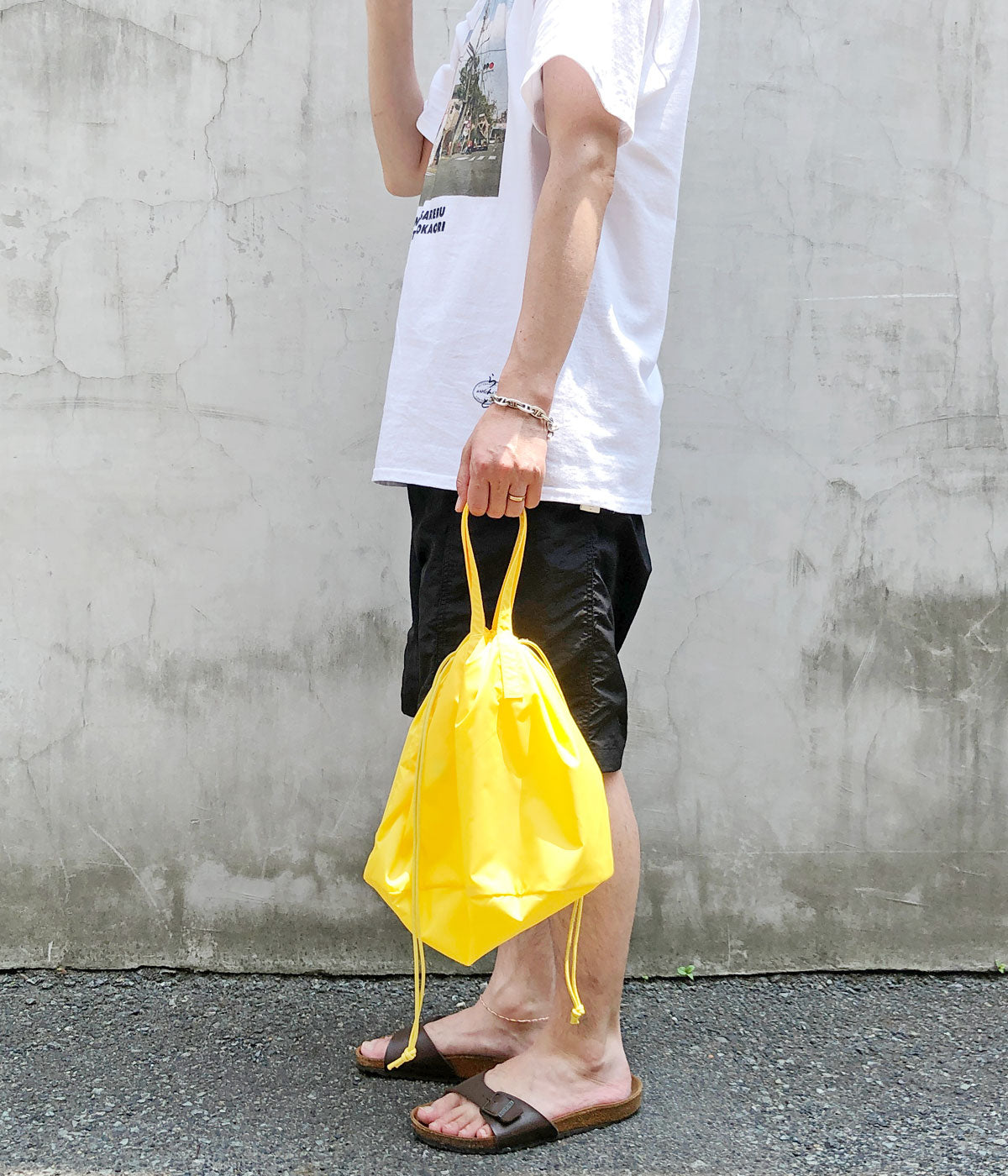 ERA.から、RENYLON HELMET BAGが入荷しました。イギリス空軍のヘルメットバッグをモチーフに、リサイクルナイロンを使用して作成した巾着バッグ。ERA.が作ったエコバッグ的な立ち位置による日常使いに適したバッグです。かき氷のシロップみたいな夏色の2色展開。内側にポケット付き。