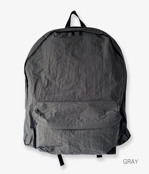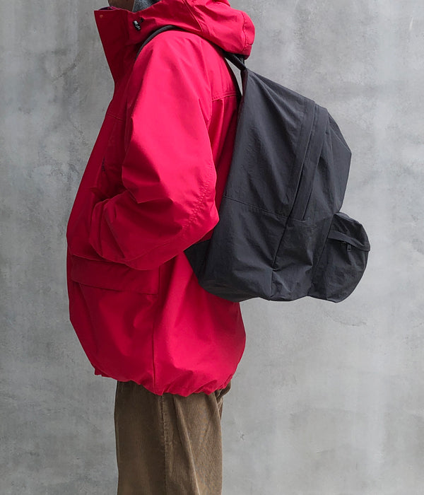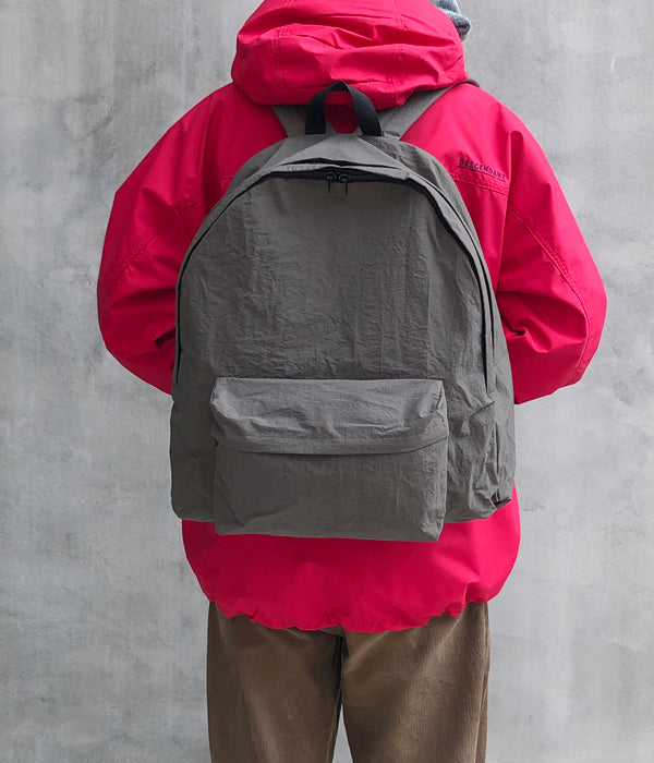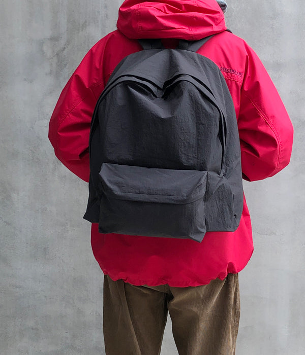 ERA.から、SHRINK DAYPACK SELが入荷しました。コットンライクな生地感のタスランナイロンに塩縮加工を施した、シワ感のある素材を使用した、少し大きめの丸みを帯びたフォルムが特徴のデイパック。メインルームと分けたサブルームを設けたセパレート式デザインで効率的な収納を楽しめます。大きな外ポケット、メインルーム内側にもポケットを設けた多機能な作り。
