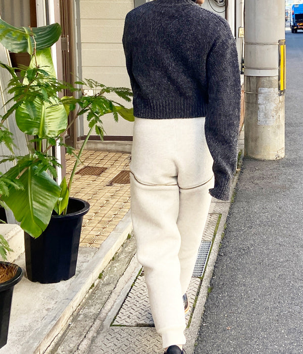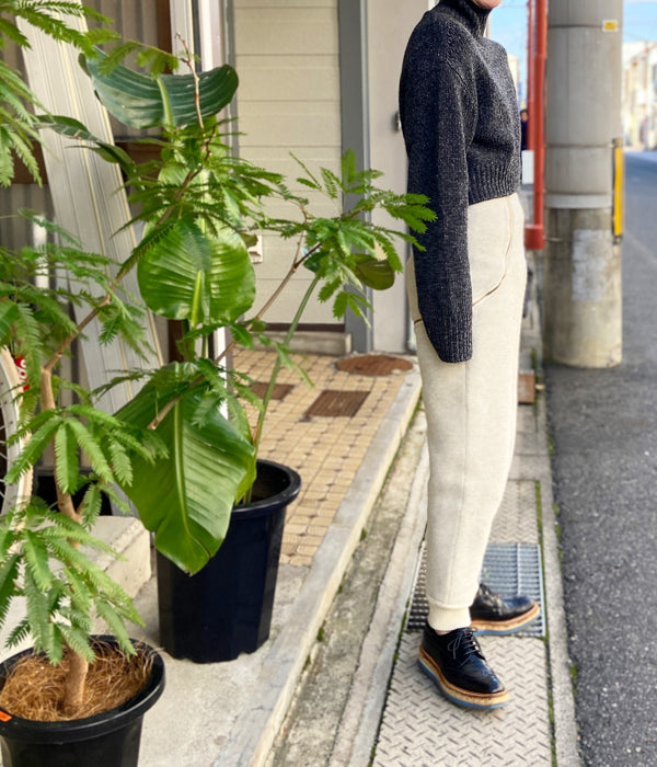 FUMIKA_UCHIDAから3G CASHMERE/SILK_HIGH-NECK SHORT SWEATERが入荷しました。カシミアのモール糸にシルク糸を加えたイタリア紡績の糸を使用の高級感あるモールセーター。ボリュームがありつつ軽さのある糸質を活かしたオーバーサイズとショート丈が特徴的。程よい厚みで暖かく、ソフトで滑らかな肌ざわりです。
