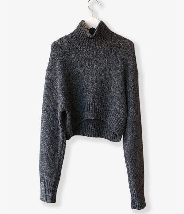 FUMIKA_UCHIDA/3G CASHMERE/SILK_HIGH-NECK SHORT SWEATER(CHARCOAL)