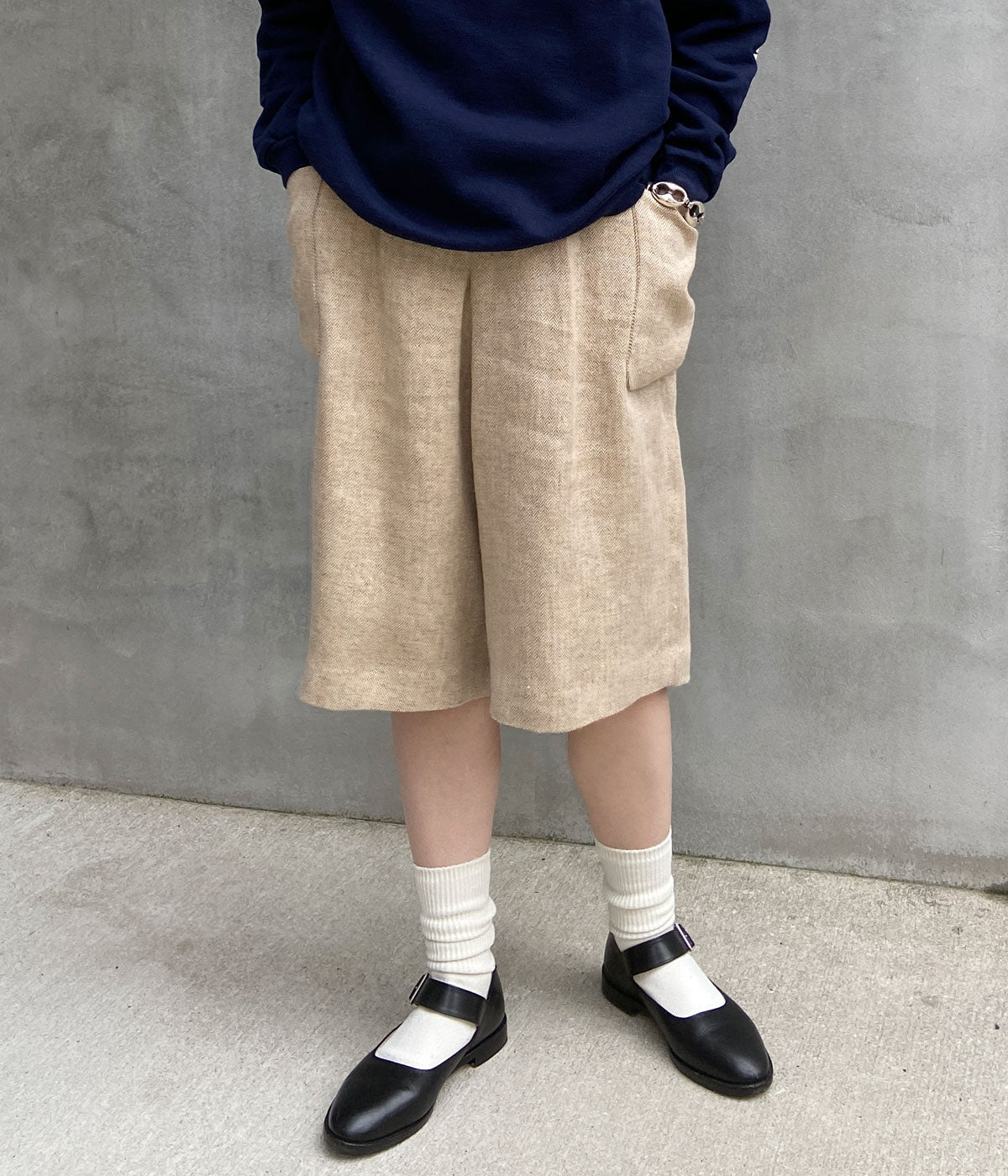 FUMIKA_UCHIDA/HEMP SUITING SHORTS(BEIGE HERRINNGBONE)