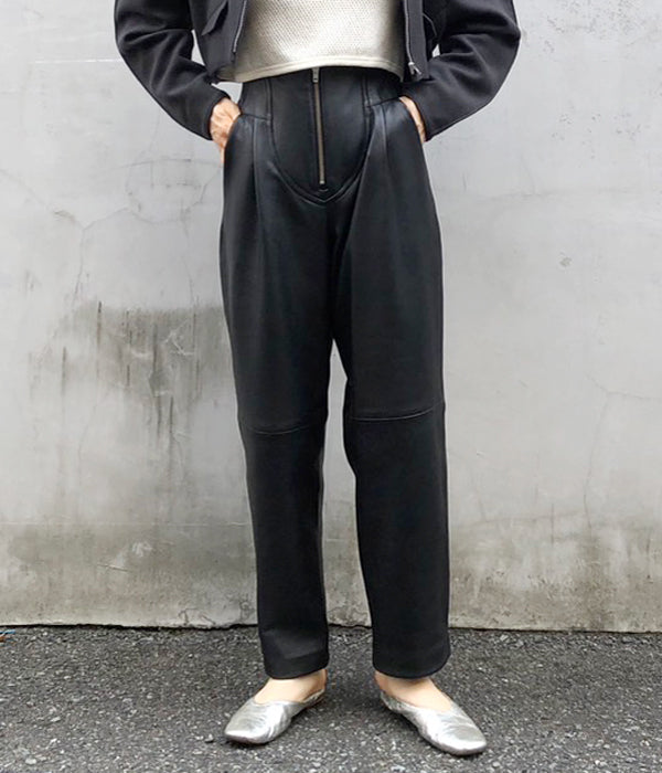 FUMIKA_UCHIDA/LEATHER ONE-TUCK PANTS(BLACK)
