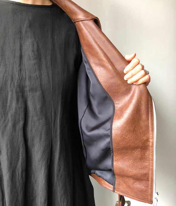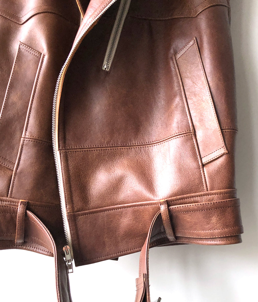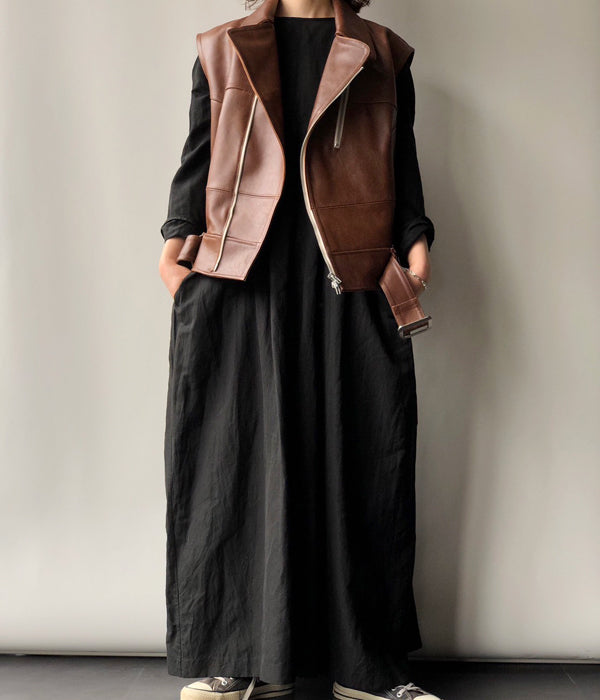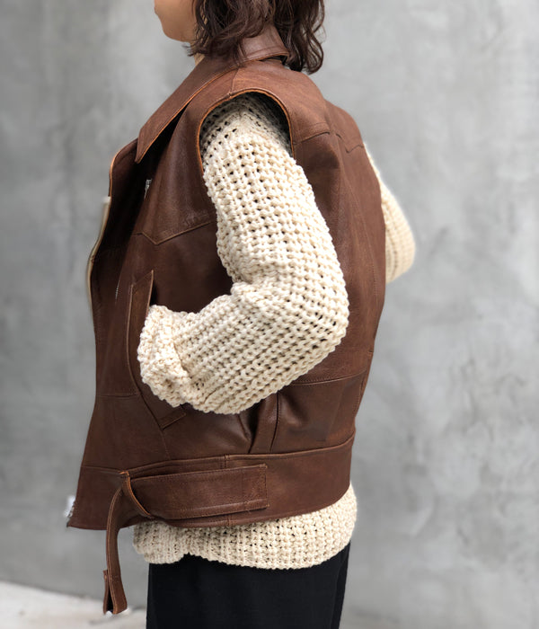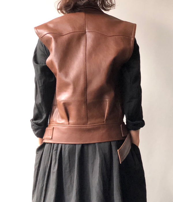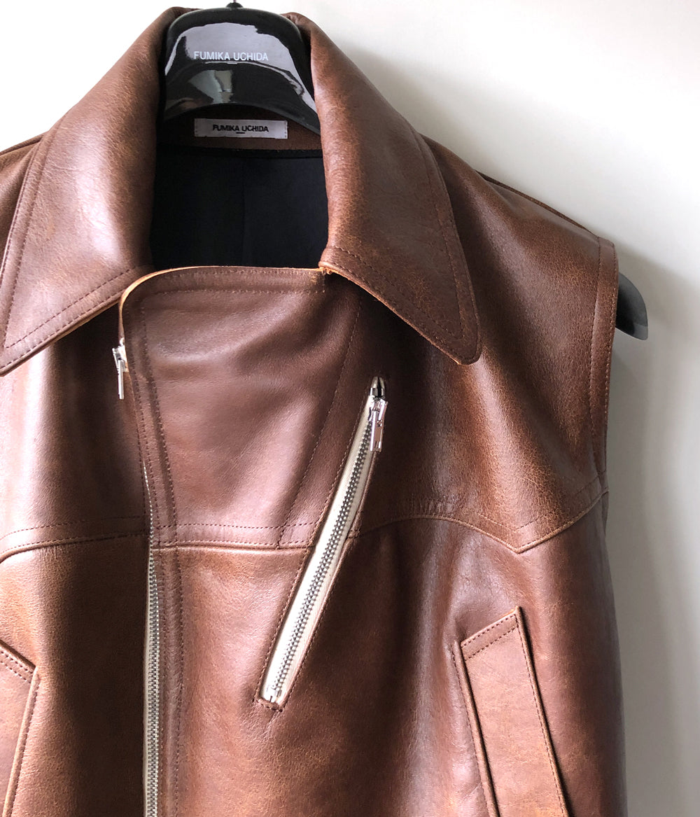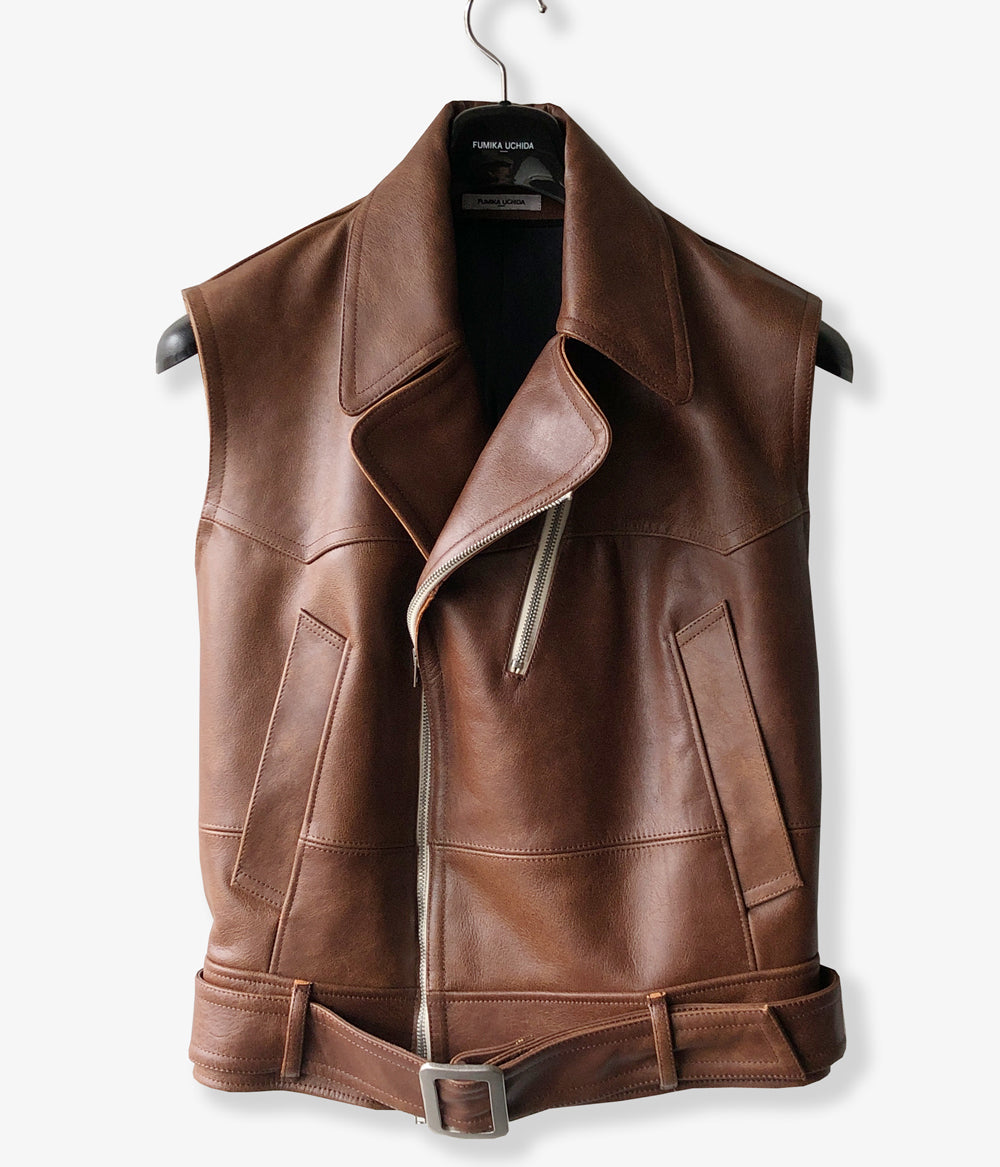 FUMIKA_UCHIDA/LEATHER SLEEVELESS DOUBLE RIDERS JACKET(BROWN)