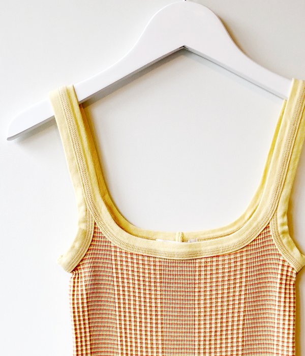 FUMIKA_UCHIDAからNeedle Drawing/BORDER STRAIGHT-NECK TANKが入荷しました。新型のストレートネック型タンクトップ。ネックと肩周りのリブ目を変えることでストラップが伸びすぎずに肩の外側を通り、低い位置にまっすぐなフロントラインを形成。胸元をしっかりホールドしながら低い位置でラインがキープされるよう工夫されています。