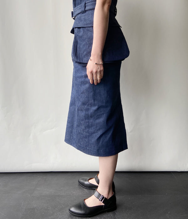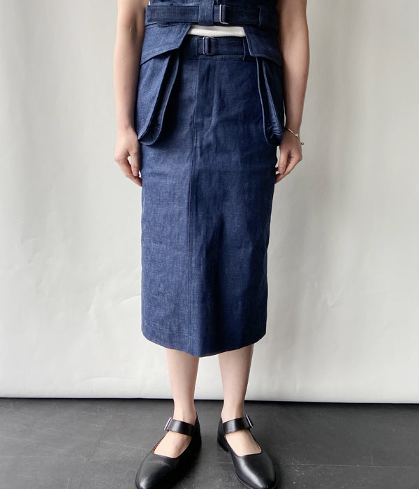 FUMIKA_UCHIDA/NEPPED DENIM BELTED SKIRT(INDIGO)