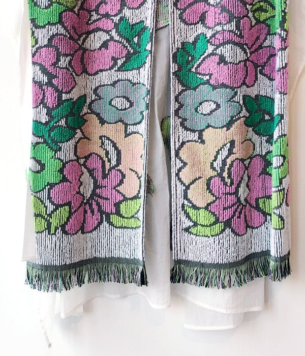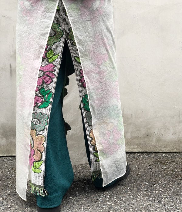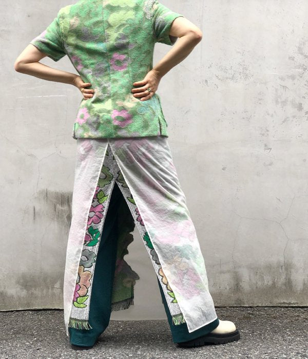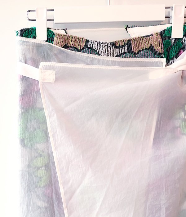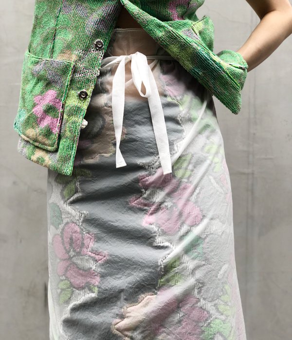 FUMIKA_UCHIDAから/Pile/FLORAL WRAP SKIRTが入荷しました。パイル素材のスカートにナイロンタフタのエプロンを重ね、巻き方で柄の見え方を変えられるデザイン。パイルスカートは柄に合わせてカットしたフロント、左脇のジップでの開閉、センターバックの深いスリットのディテール。上に重なるエプロン部分は両サイドにテープの付いた巻きスカートで丈感や柄・色の見え方に変化をつけられます。大胆にくり抜かれたフロントがコーディネートに隙と軽さをプラス。Iラインシルエットでトップスとのバランスも取りやすくなっています。