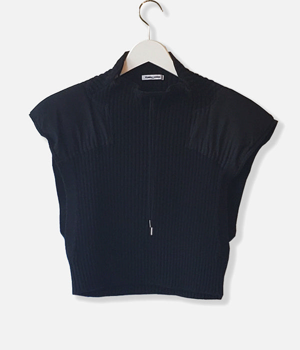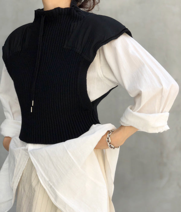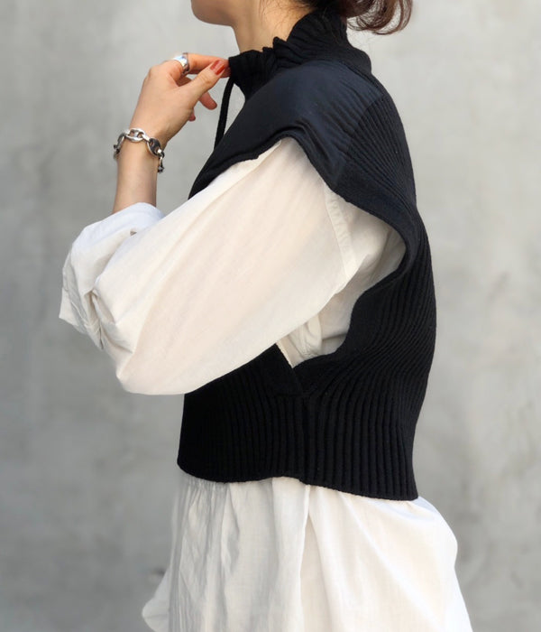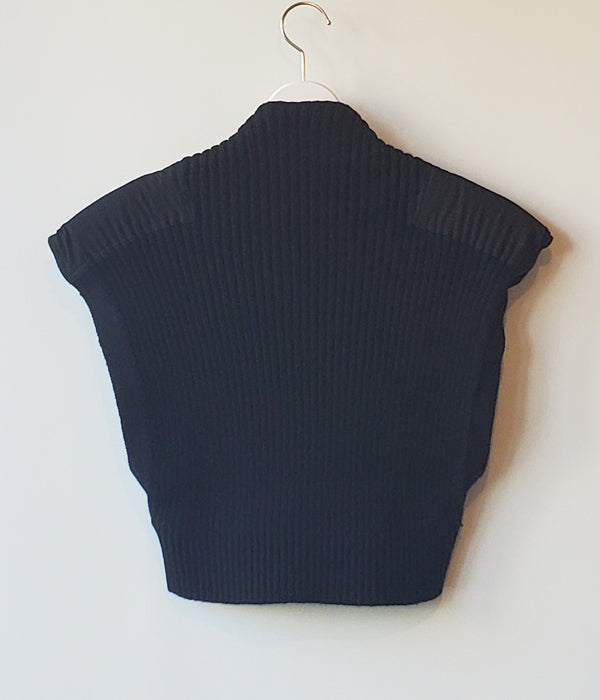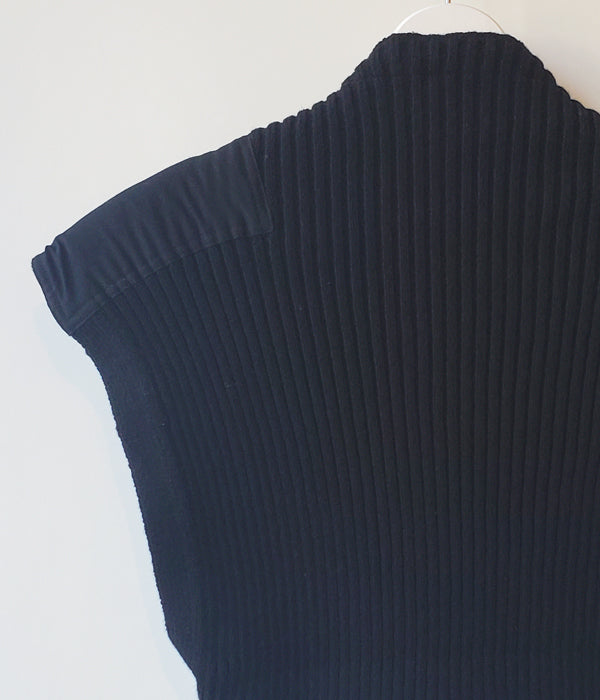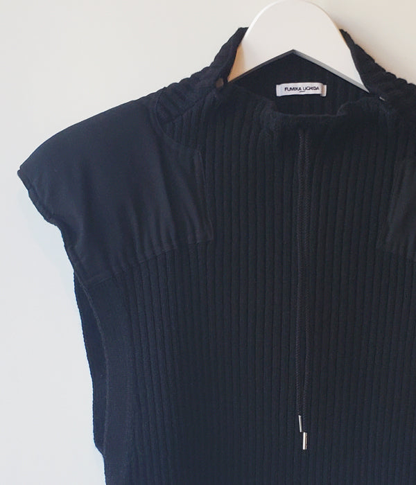 FUMIKA_UCHIDA/RIB KNIT PATCHED SLEEVELESS CROPPED SWEATER(BLACK)
