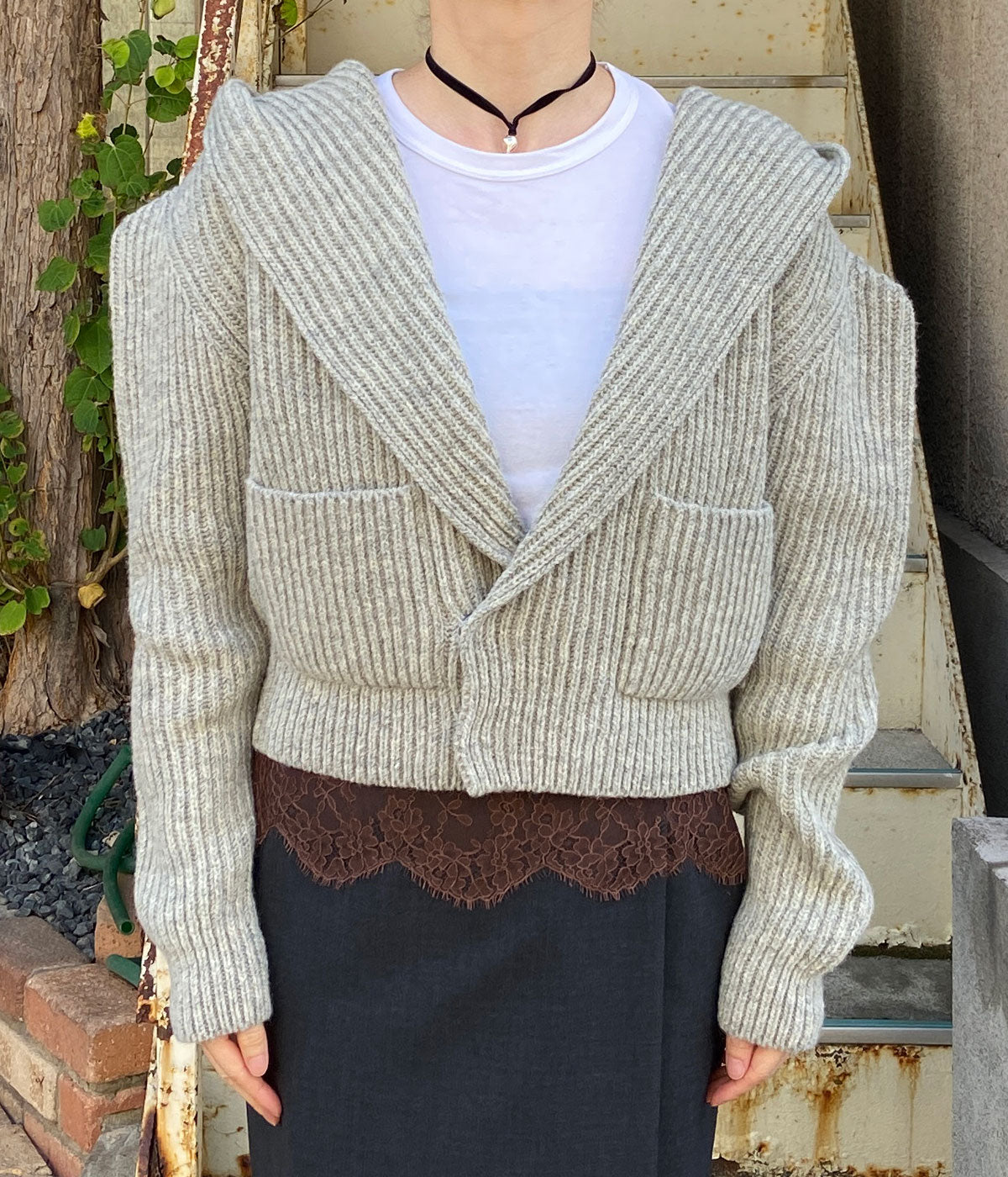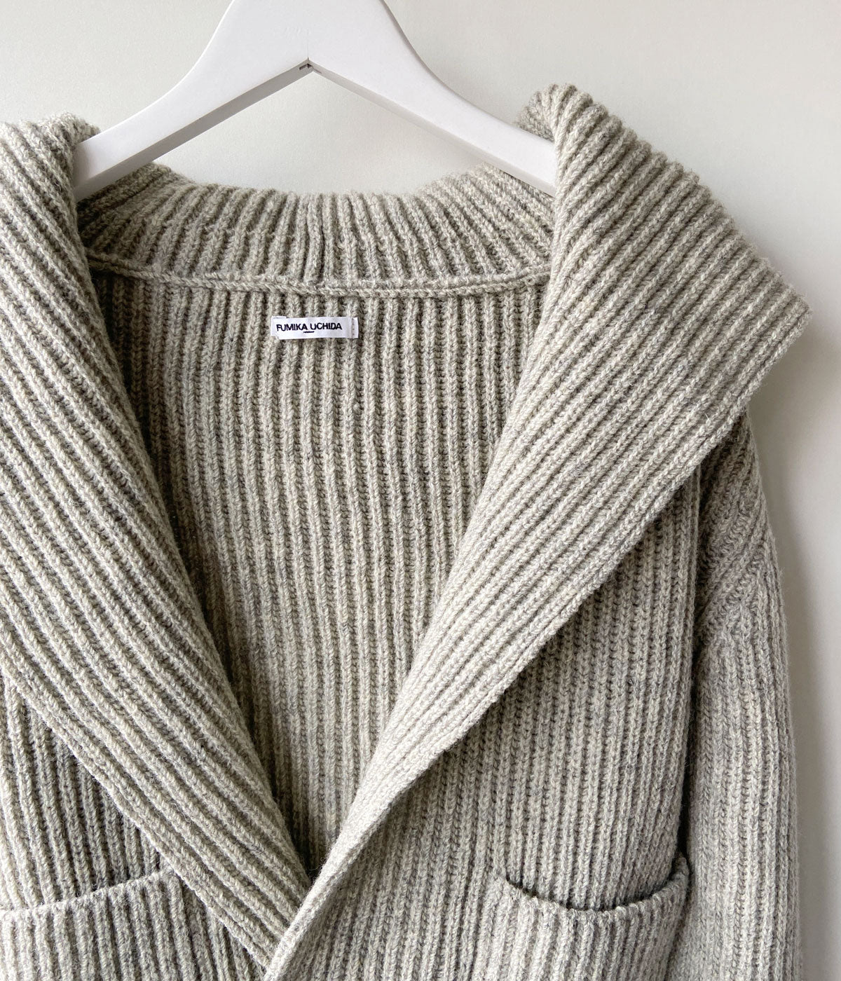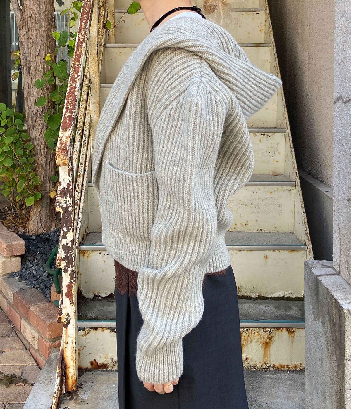 FUMIKA_UCHIDA/SHETLAND RIB STITCH HOODED CARDIGAN(TOP GREY)