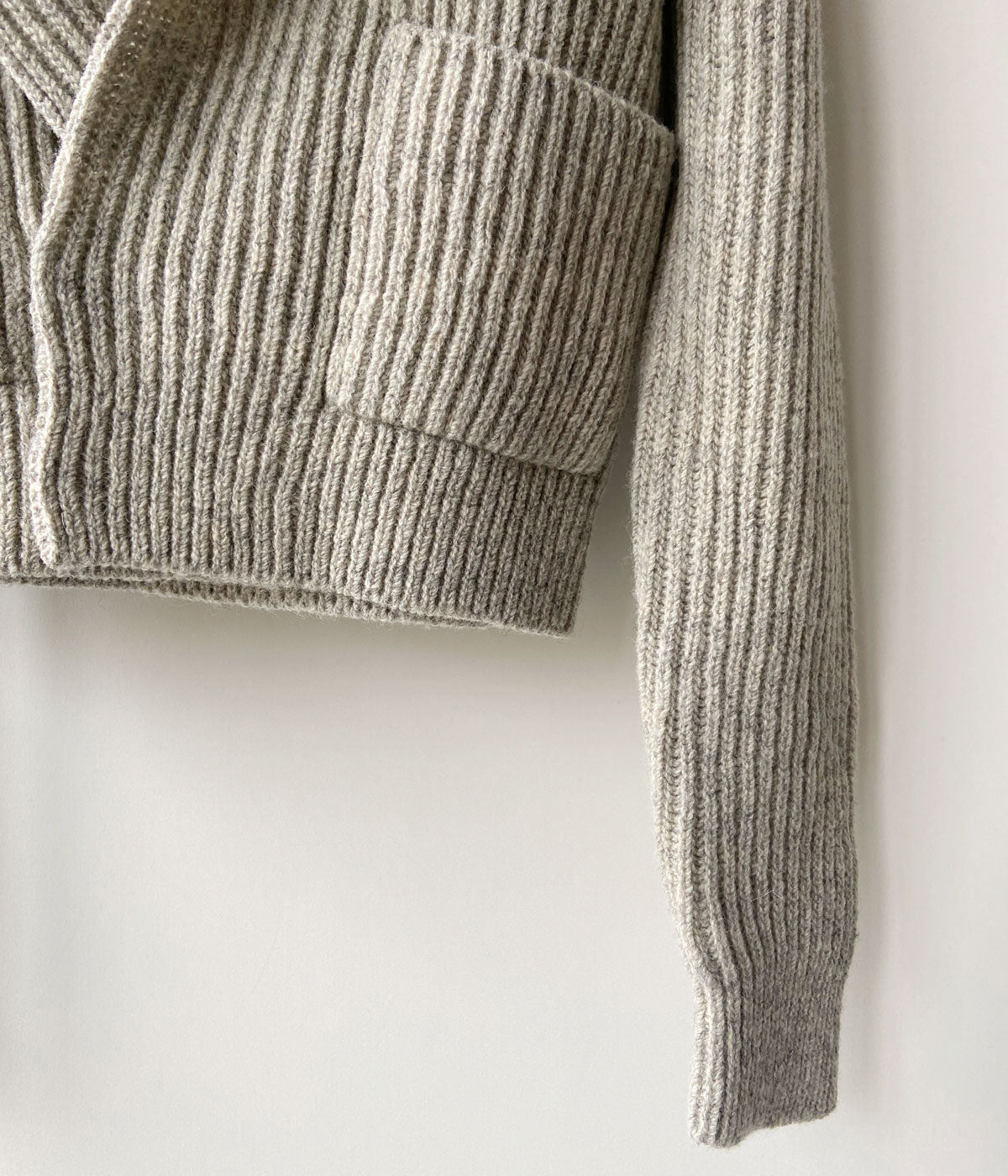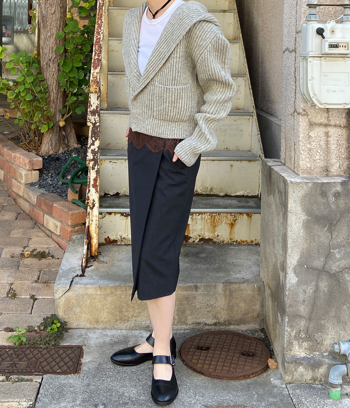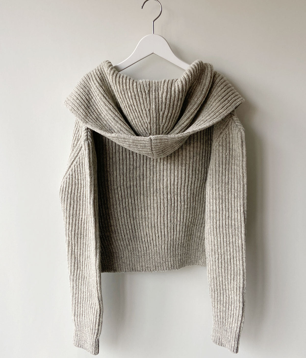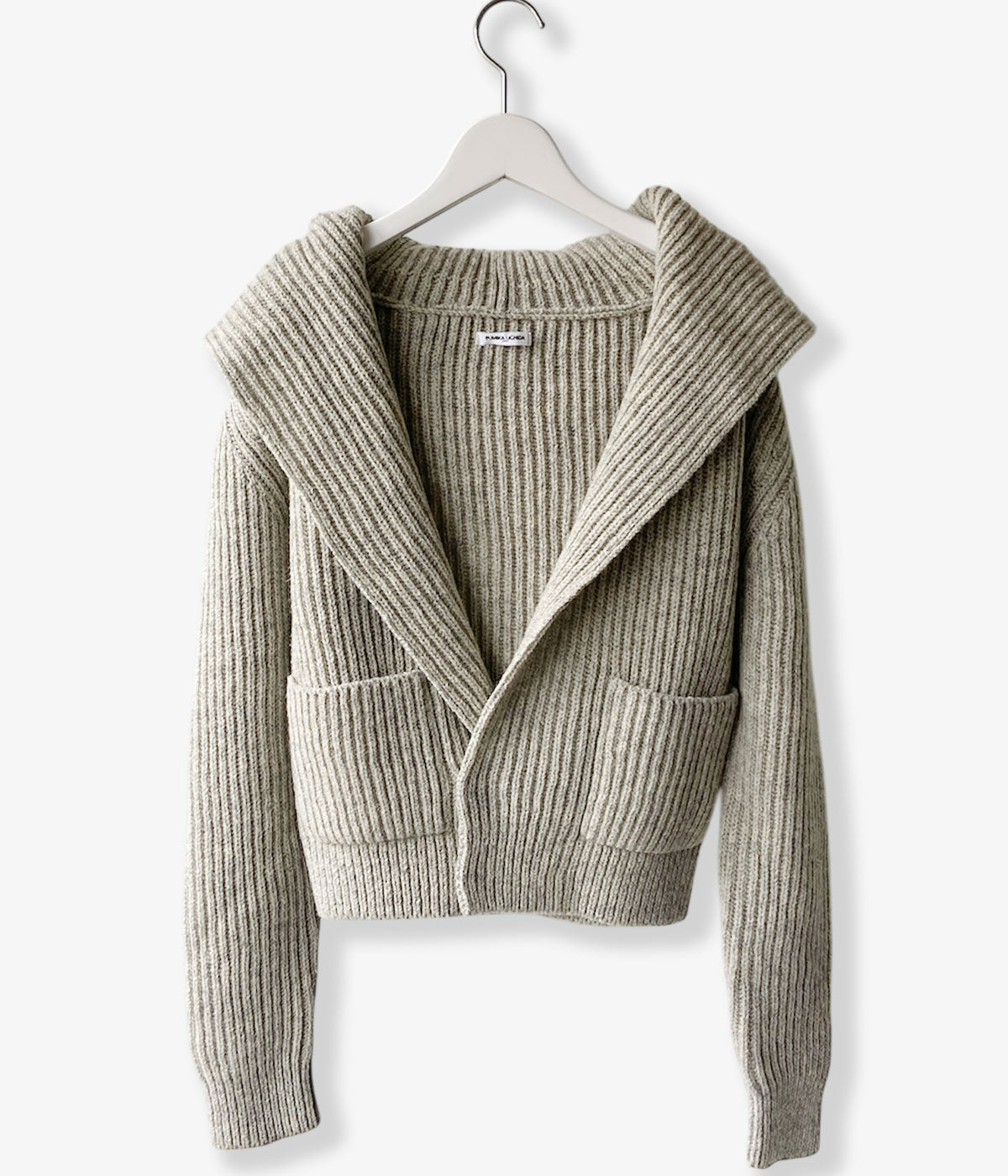 FUMIKA_UCHIDA/SHETLAND RIB STITCH HOODED CARDIGAN(TOP GREY)