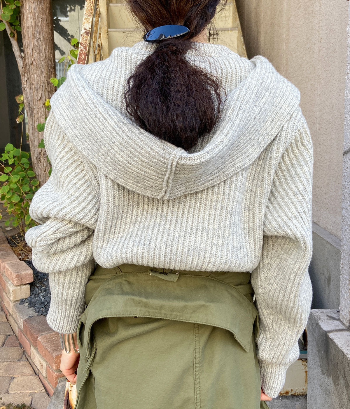 FUMIKA_UCHIDA/SHETLAND RIB STITCH HOODED PULLOVER(TOP GREY)