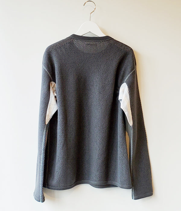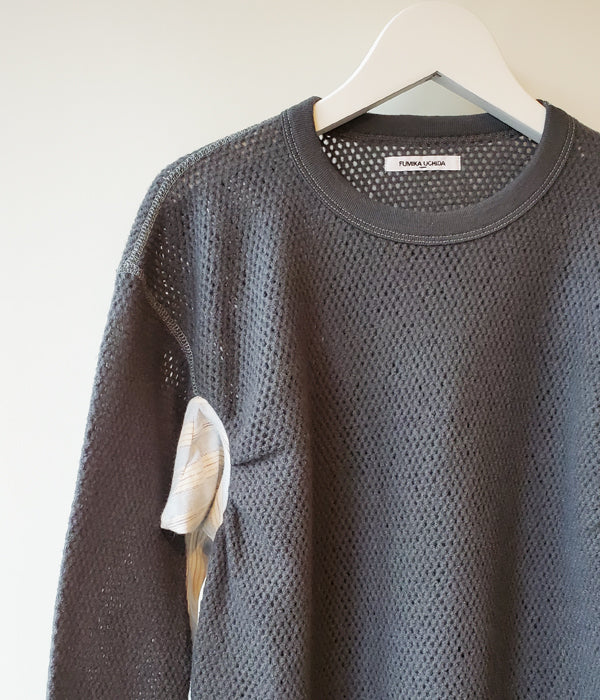 FUMIKA_UCHIDA/Striped Flannel Wool Mesh LONG-SLEEVE THERMAL(INK)