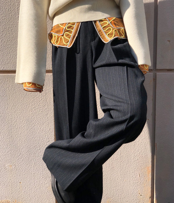 FUMIKA_UCHIDA/Thick 2Types Pinstriped/WIDE SLACKS(THIN stripes/WHT line)