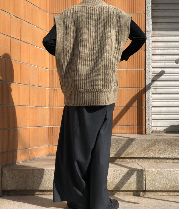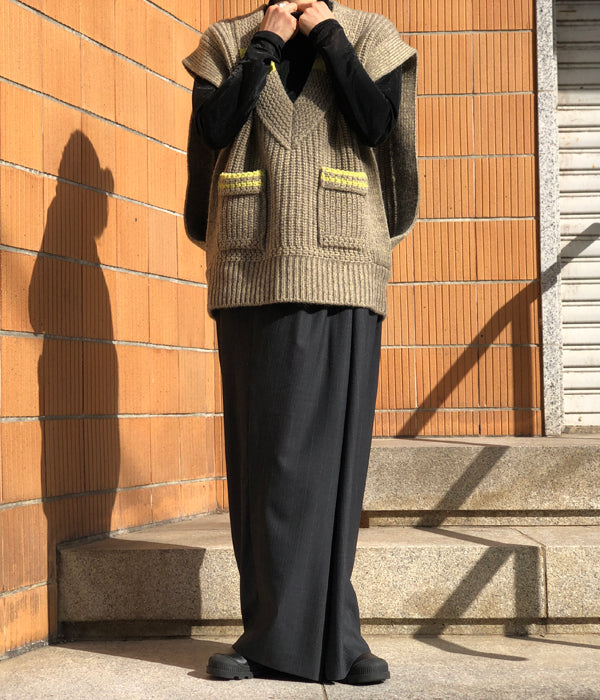 FUMIKA_UCHIDAからThin 2 Types Pinstriped/SIDE-FRONT SLACKSが入荷しました。微妙に濃度が異なるチャコールグレーのヘリンボーン組織に2パターンのピンストライプをそれぞれに入れたオリジナル生地を使用。的外れなくらい大きなサイズのスラックスを大きくねじって履く構造になっていて、重なるように前後にセパレートする太いレッグにそれぞれ足を通して着用します。サイドラインがフロントに来るよう構築されたアシンメトリーな見え方にはピンストライプのコンサバティブさを逆手に取った面白さがあります。