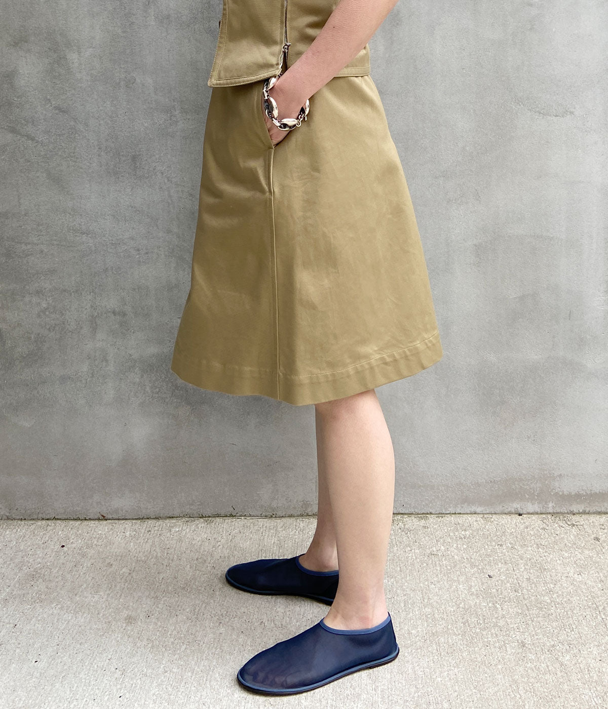 FUMIKA_UCHIDAからUNIFORM WEAPON SHORTSが入荷しました。トルコオーガニック綿のコンパクト糸を使用したウエストポイント生地で作るショートパンツ。しっかりとした打ち込みで綾目の立ち上がりと糸質での光沢感があり、古い時代のチノ生地のように質の良さによる光沢のある美しさはジャパンメイドらしい生地です。ミリタリーウェアのディテールを取り入れ、奥行きのある立体的なシルエット。