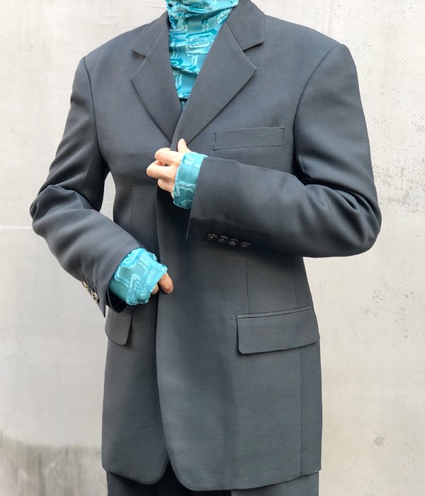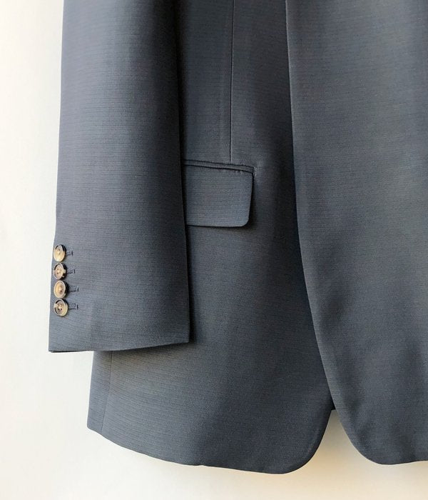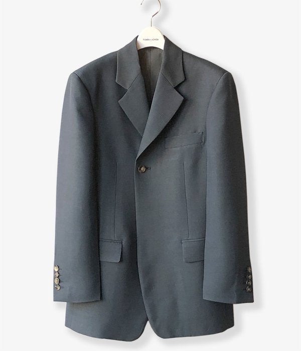 FUMIKA_UCHIDAからW/R DOUBLE-BREASTED JACKETが入荷しました。独特な糸使いと組織で織られた深い表情のウールレーヨン生地を使用。二重に仕立てた右前の内側にはサスペンダーがあり袖を通さず後ろに落としたりと崩した着方が可能となります。中心からずれた高めの位置の一つボタン、袖に付くホーンボタンはオランダ水牛の角を素材としイタリアで仕上げられた拘りのパーツ。光沢があり奥深い絶妙な色の合わせには思い切ったカラーを持ってくるのもおすすめです。
