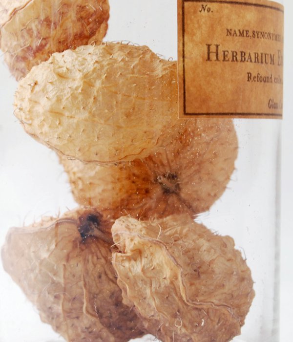 試薬瓶の中に乾燥植物を収納したGLASS CONTAINER Botanical( グラスコンテナ ボタニカル)。国内で数社、そこで働く僅かな職人さんのハンドメイドにて試薬瓶は作られています。過去に生物学者が植物を入れて標本にしていた事をヒントに、普段あまり見かけない乾燥した植物を収納しました。製壜業界と植物の再生をコンセプトにした博士の標本、お部屋のインテリアにいかがでしょうか?