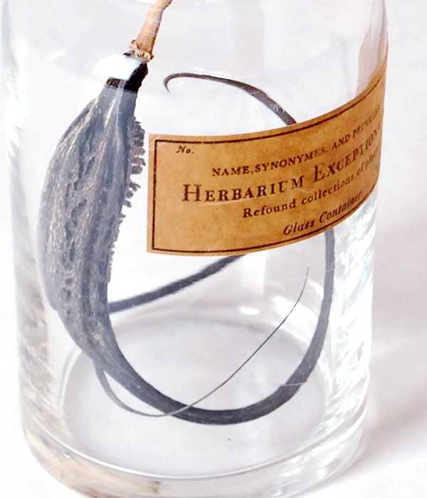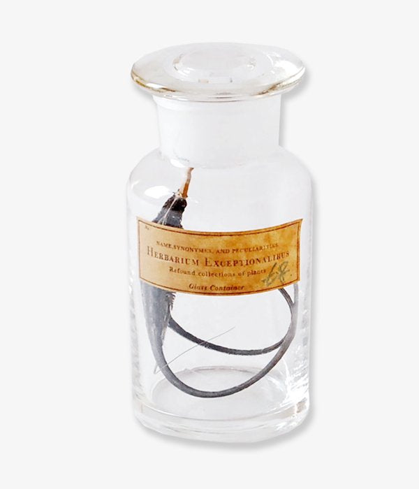 試薬瓶の中に乾燥植物を収納したGLASS CONTAINER Botanical( グラスコンテナ ボタニカル)。国内で数社、そこで働く僅かな職人さんのハンドメイドにて試薬瓶は作られています。過去に生物学者が植物を入れて標本にしていた事をヒントに、普段あまり見かけない乾燥した植物を収納しました。製壜業界と植物の再生をコンセプトにした博士の標本、お部屋のインテリアにいかがでしょうか?