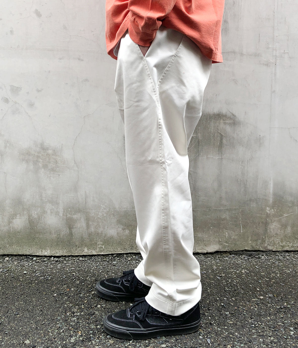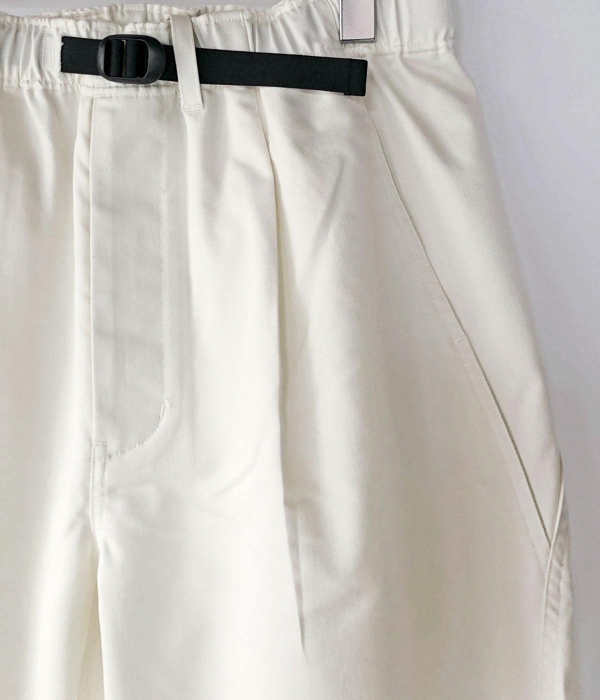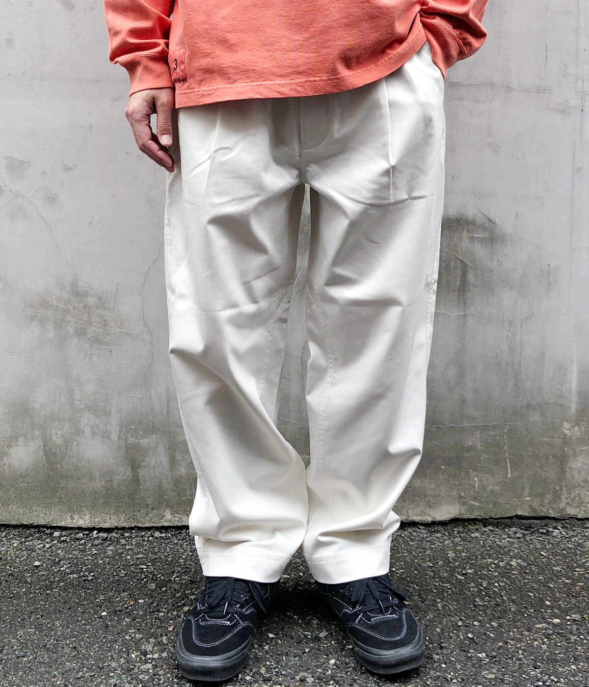 Goldwinから、TWILL EASY PANTSが入荷しました。見た目の質感はツイルコットンですが、ストレッチ性や形態安定性に優れたソロテックスをミックスすることで質感はそのままに快適な履き心地も実現した1着。バックルでサイズ調節が可能なイージー仕様。ワンタックが入ったワイドストレートシルエットのカジュアルなディティール。ポケット右側にファスナー付きのセキュリティポケットを備えます。