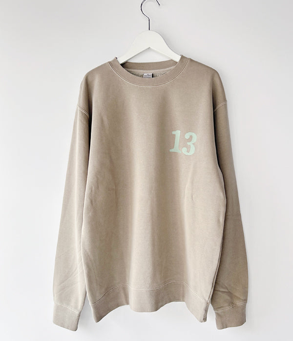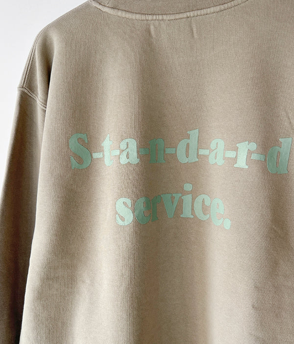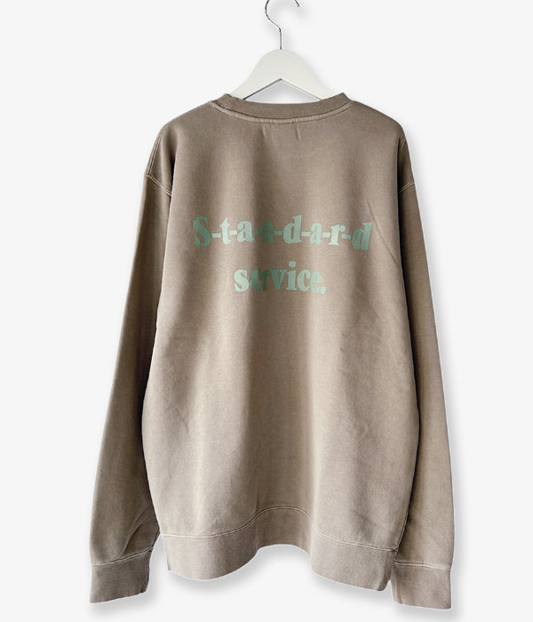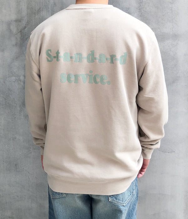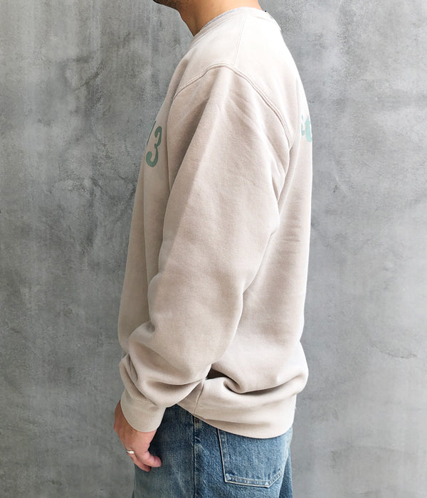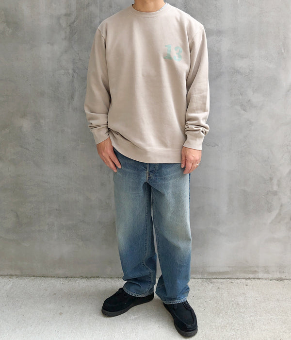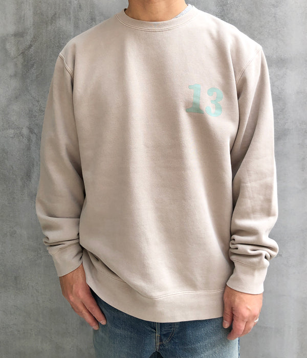 HIGH! STANDARDから、13 STANDARD SERVICE 9oz CN PIGMENTが入荷しました。INDEPENDENT製ピグメントダイ 9ozボディを使用し、HIGH! STANDARDらしいプリントデザインを両面に施したクルーネックスウェット。ピグメントダイ加工によるフェード感のある表情の中厚手ボディで、一枚での着用からインナーまでと幅広く活躍する1着です。裏起毛のディティール。