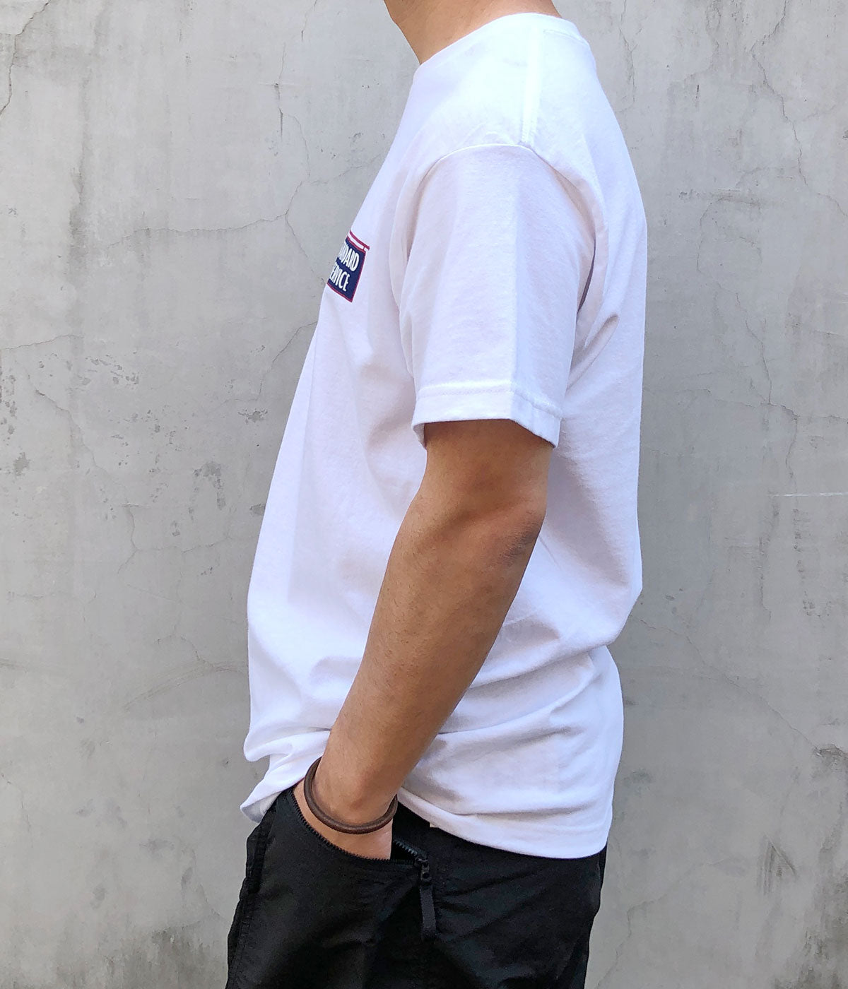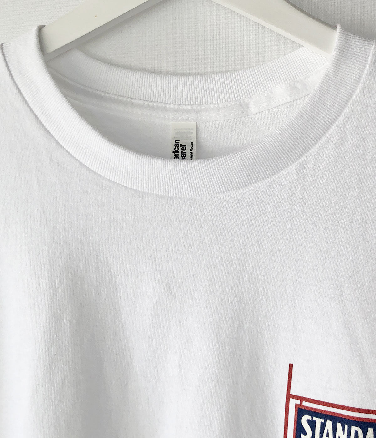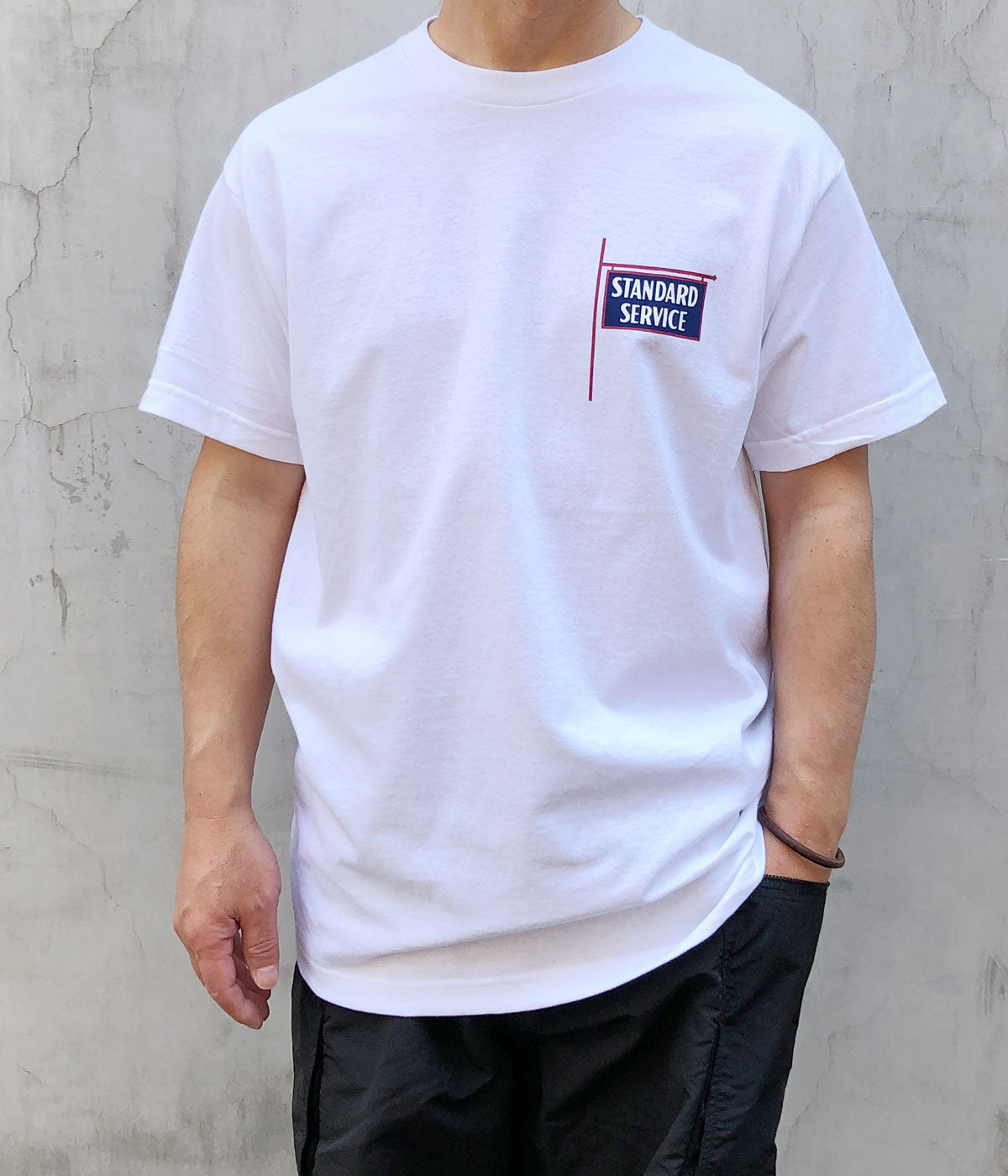 HIGH! STANDARDから、STANDARD SERVICE SIGN SS TEEが入荷しました。American Apparel 1301にプリントを施した半袖Tシャツ。左胸にフラッグを象ったスローガンを配置したアイコニックな1着です。適度な厚みで着心地の良いボディを使用した1着。