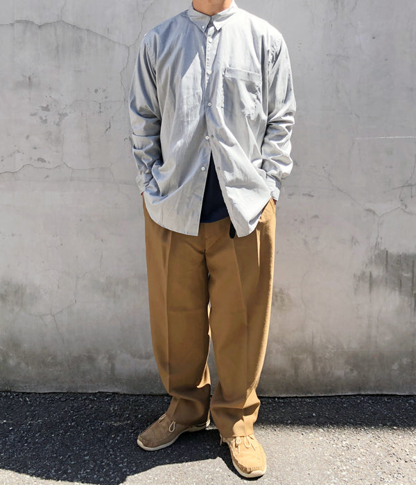 holkから、B.D SHIRTが入荷しました。やや薄手で馴染みの良いコットン素材を使用したボタンダウンシャツ。淡い色合いのパステルカラーに、バストポケット、センタープリーツによるデザイン。幅の広いゆったりとしたシルエットに仕立てました。